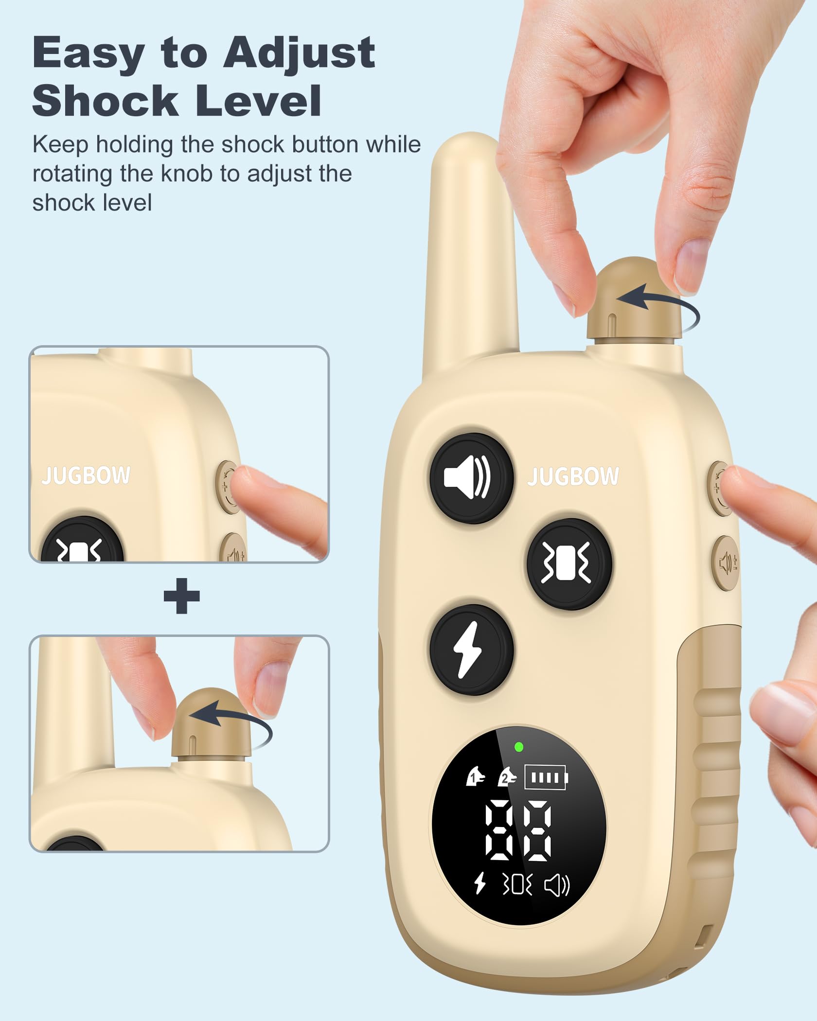 • [Completely Humane & Safe Design]: Our spiky prongs on the shock collar are detachable, you can remove the metal prongs when you're not using the static mode, Jugbow humane bark collar uses safe beep and vibration! Comes with protective rubber covers, which can be worn on the collar during electric static use to prevent skin friction.
