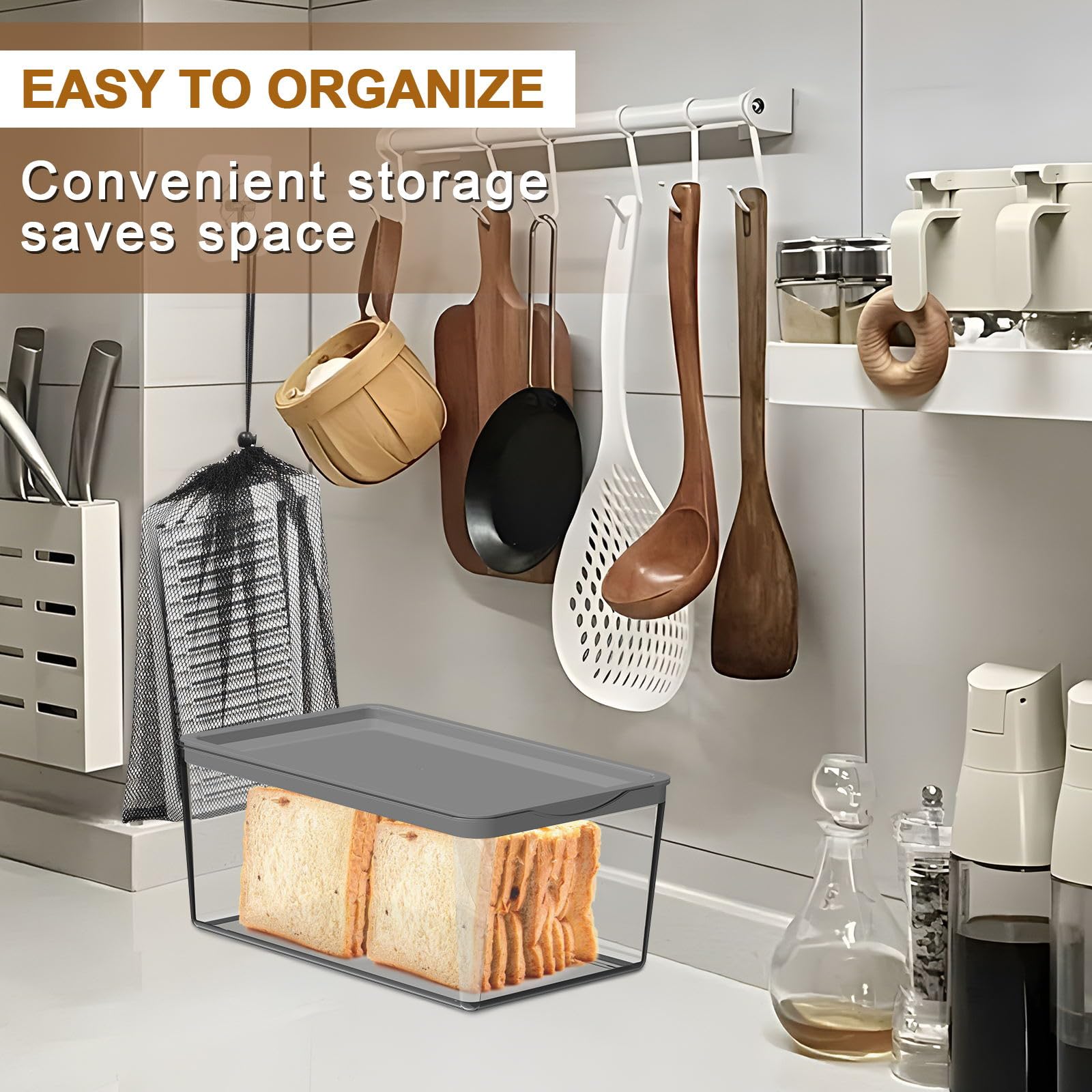 • UPGRADE MULTI-FUNCTIONAL BREAD BOX: Our upgrade bread slicer for homemade bread comes with a 9L large capacity bread boxes made of high quality makings, The crumb collector can be used as a bread box lid for easy storage of bread for homemade bread, toast, bagel, donut, cookies, fruits and vegetables for kitchen counter and fridge