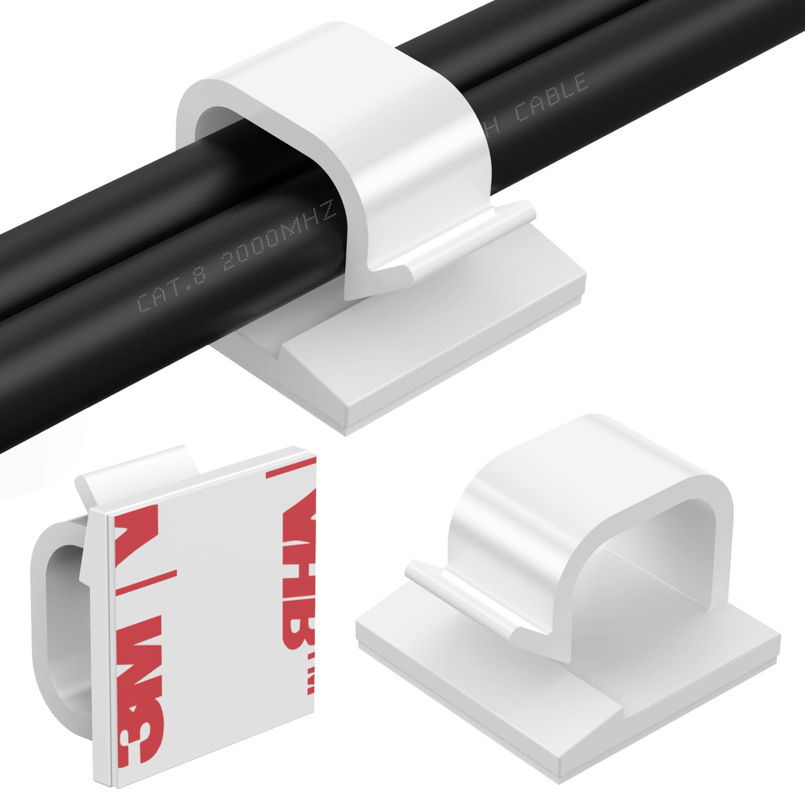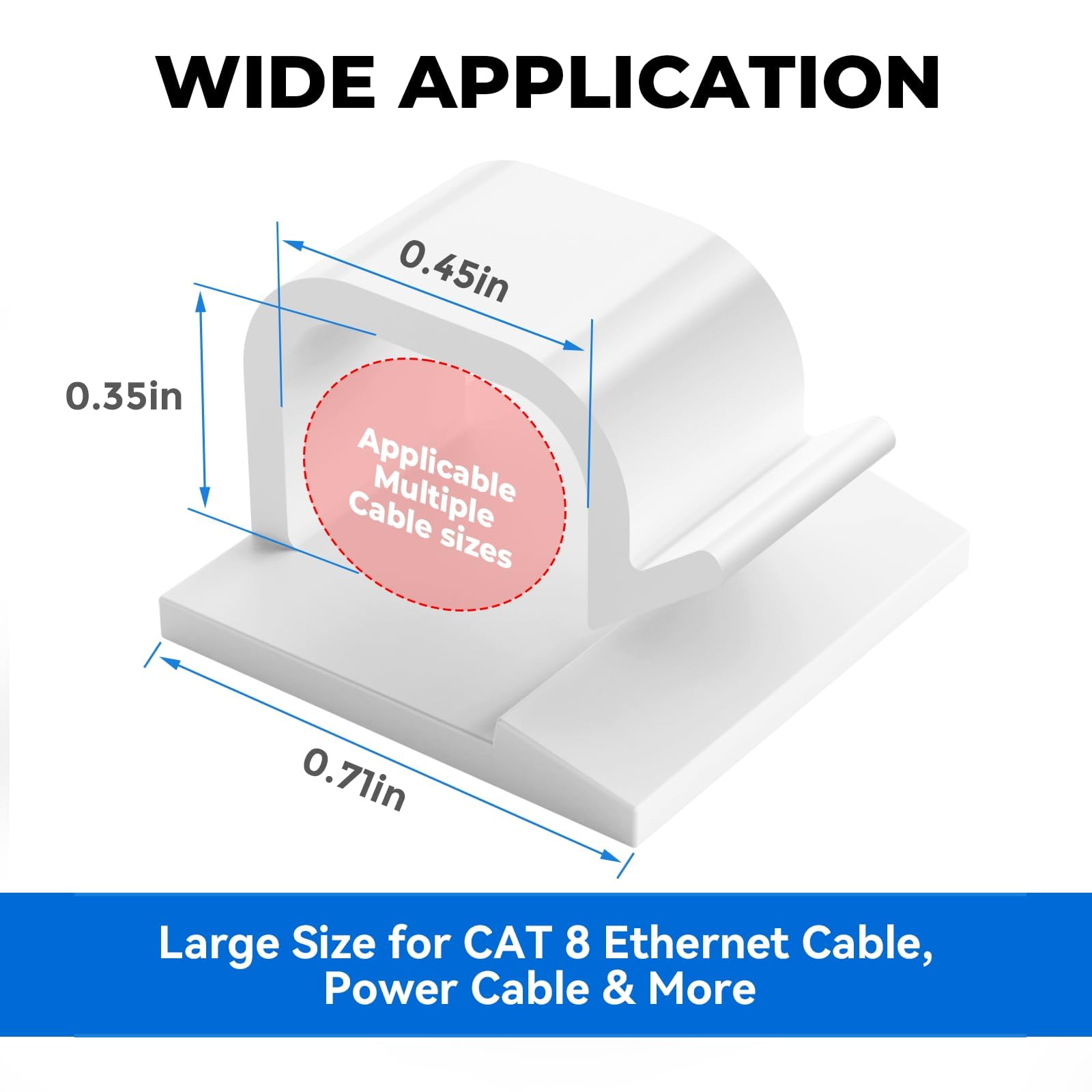 Large Cable Clips 40pcs with Strong Adhesive Tapes,Wire Holder Organizer Cord Management for Car, Office and Home (White- L04(40PCS))
