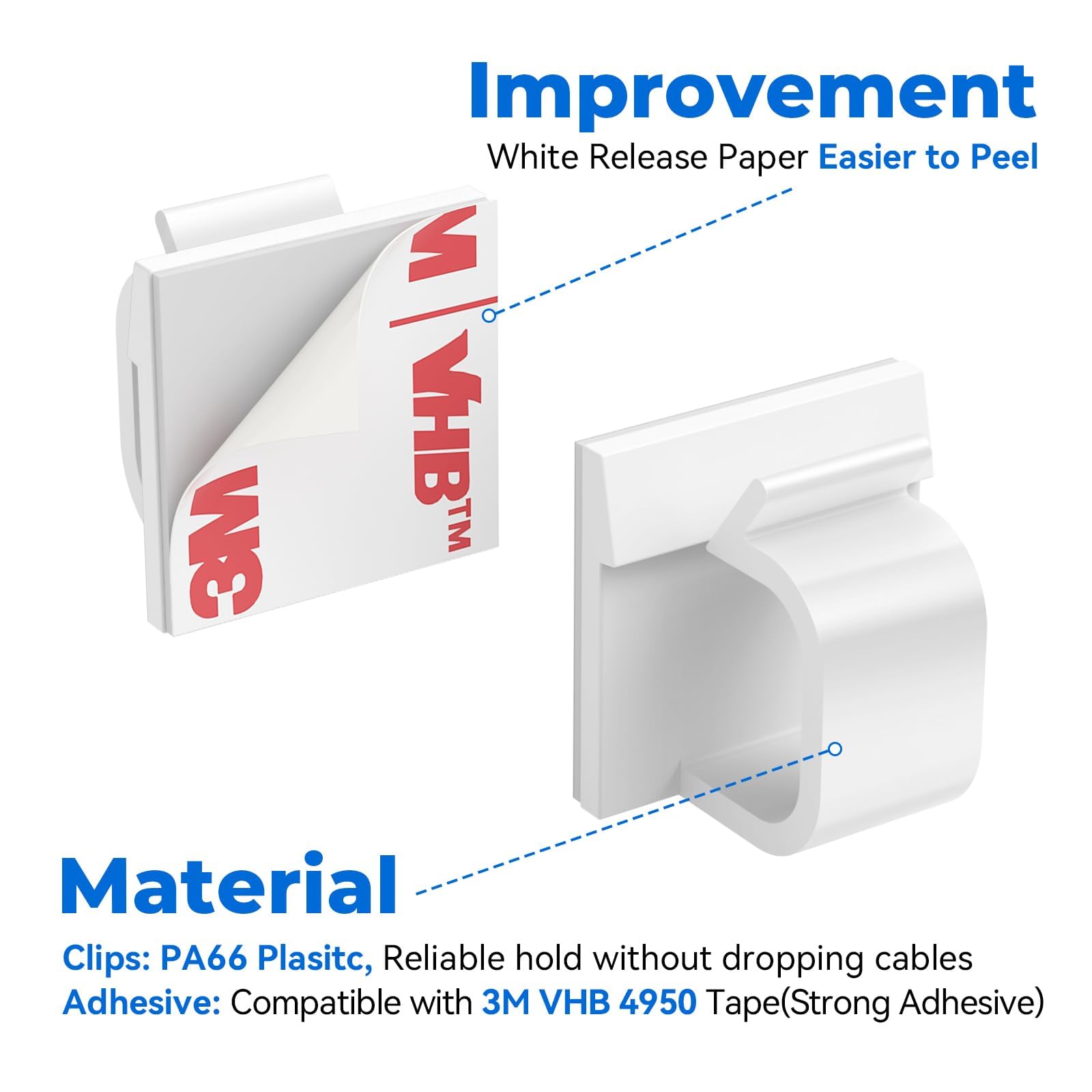 • 【Strong】Made of eco-friendly premium Nylon PA66 material, clips with strong adhesive tape