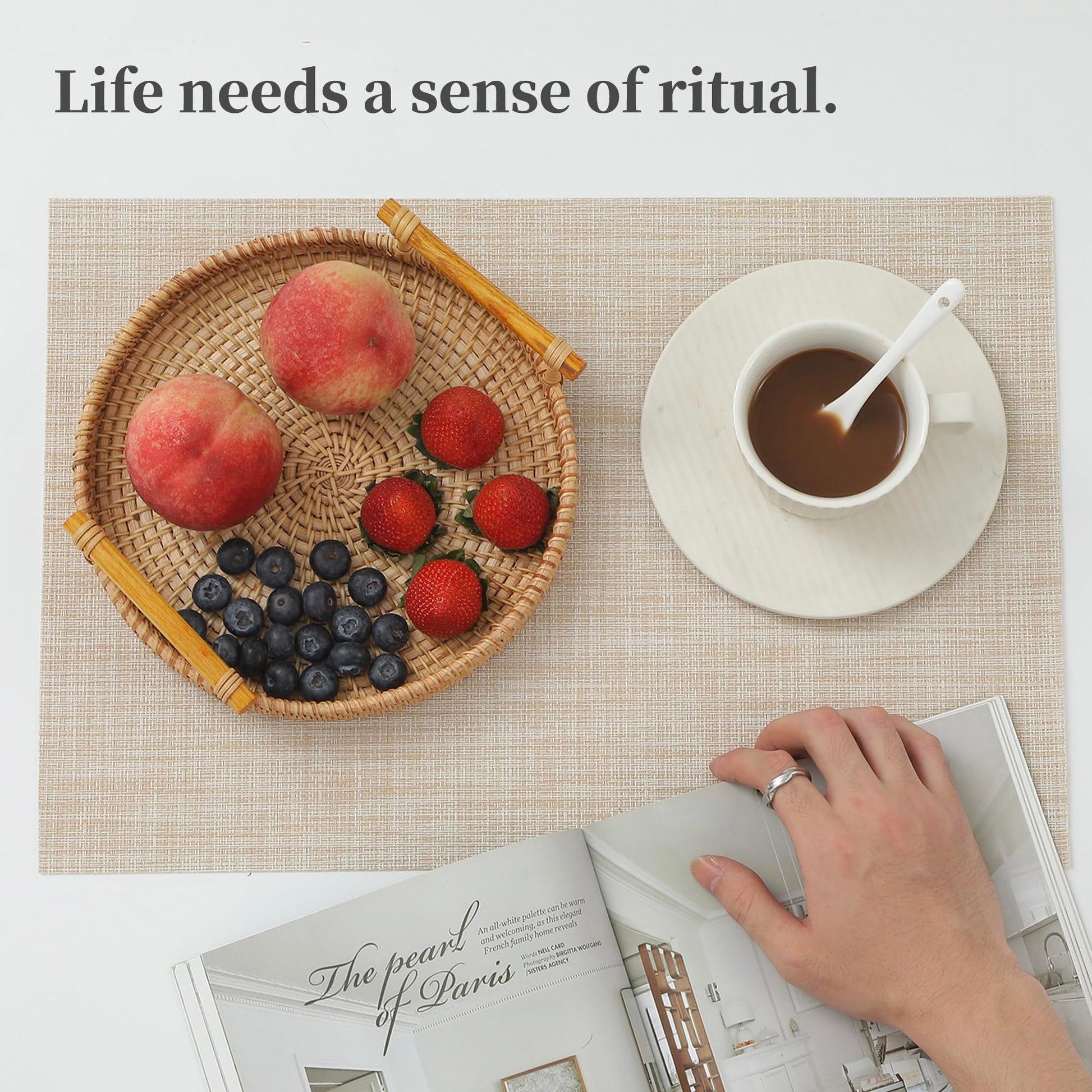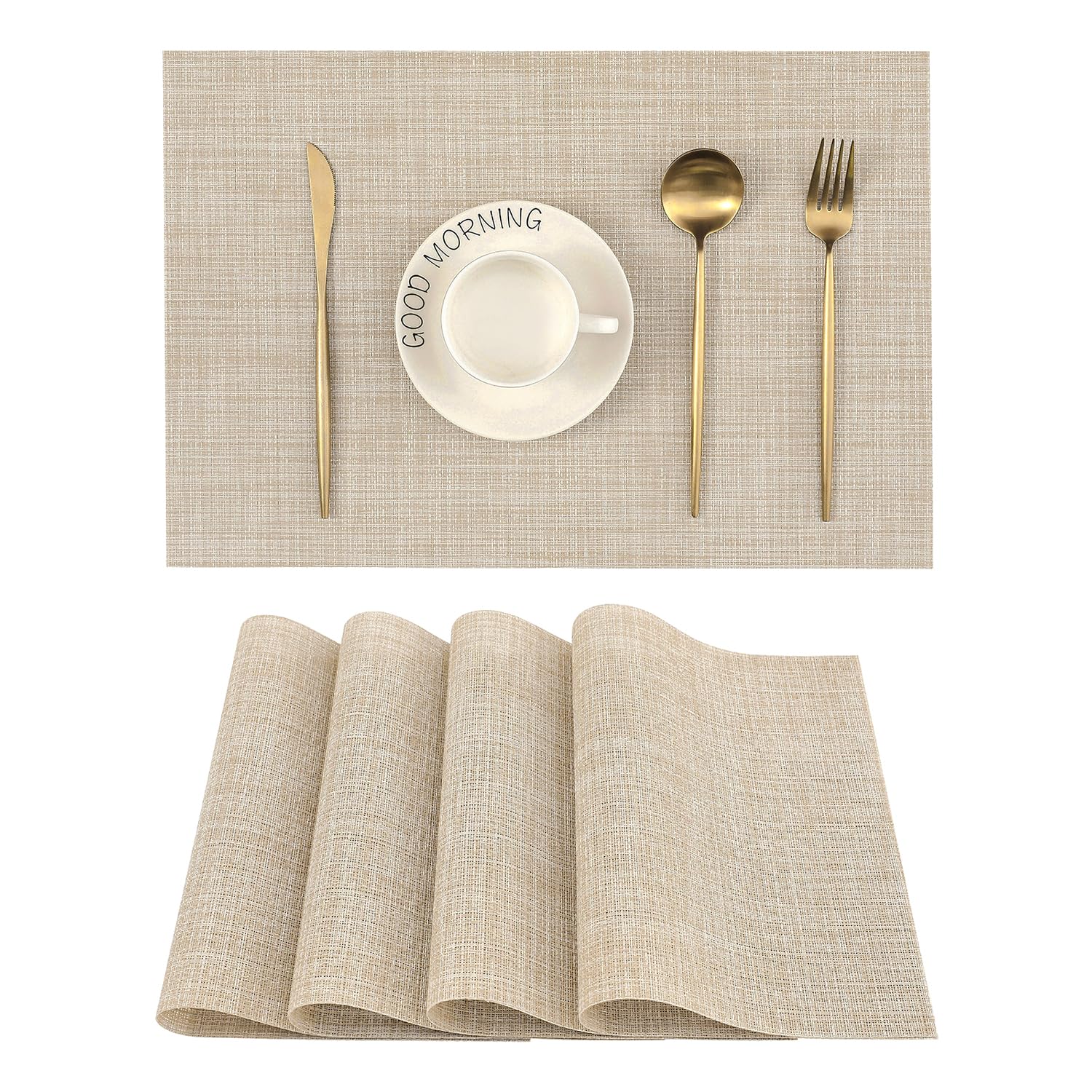 Leetaltree Beige Placemats Set of 4 - Heat Resistant Non-Slip Place mats for Dining Table, Washable Durable PVC Vinyl Woven Table Mats(Beige, 4)
