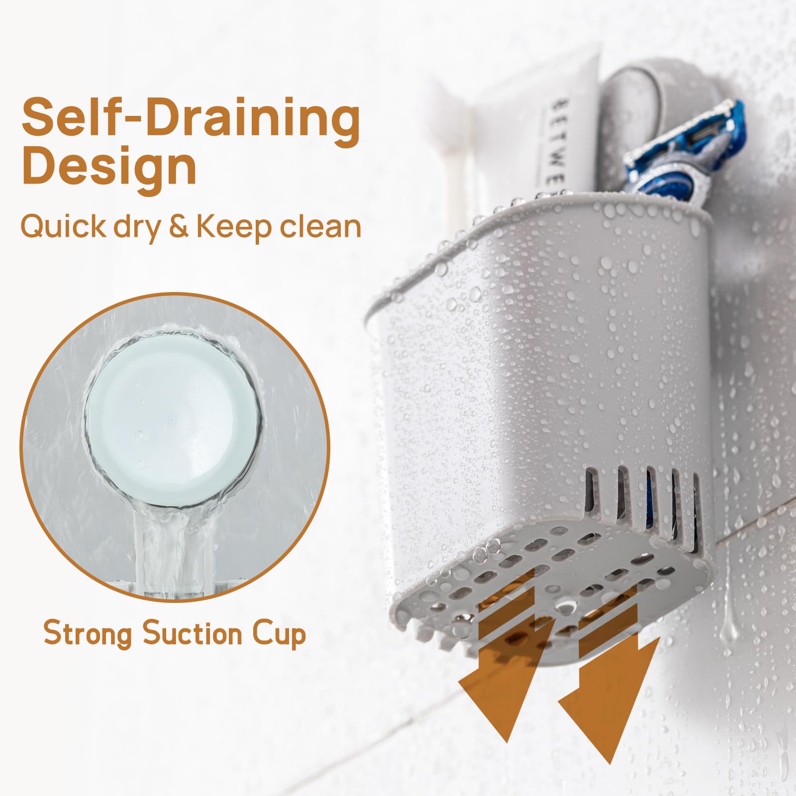 • Hollow design keeping clean: There are many drainage holes in the bottom of the shower toothbrush holder. Let excess water flow away and allows electronic toothbrush, toothpaste and razors to dry completely