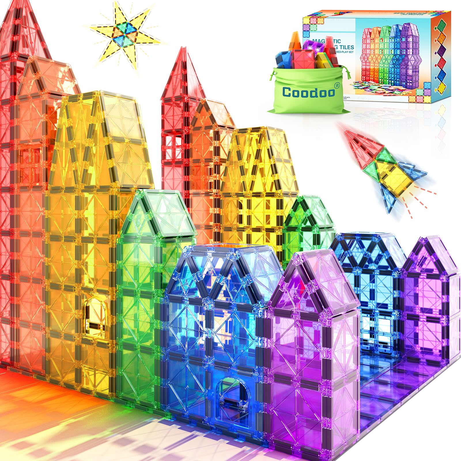 • STEM MONTESSORI & SENSORY TOYS: Magnetic tiles are open-ended toy that grows with your child. They're more than just for building. While having fun and being creative, kids are also using magnetic tiles to develop STEM-related skills such as pattern recognition, magnetic principles, problem-solving, etc. These tiles are also great as sensory toys for enhanced sensory play. So, what are you waiting for? Get Coodoo magnetic tiles today and start exploring all the different ways to use them