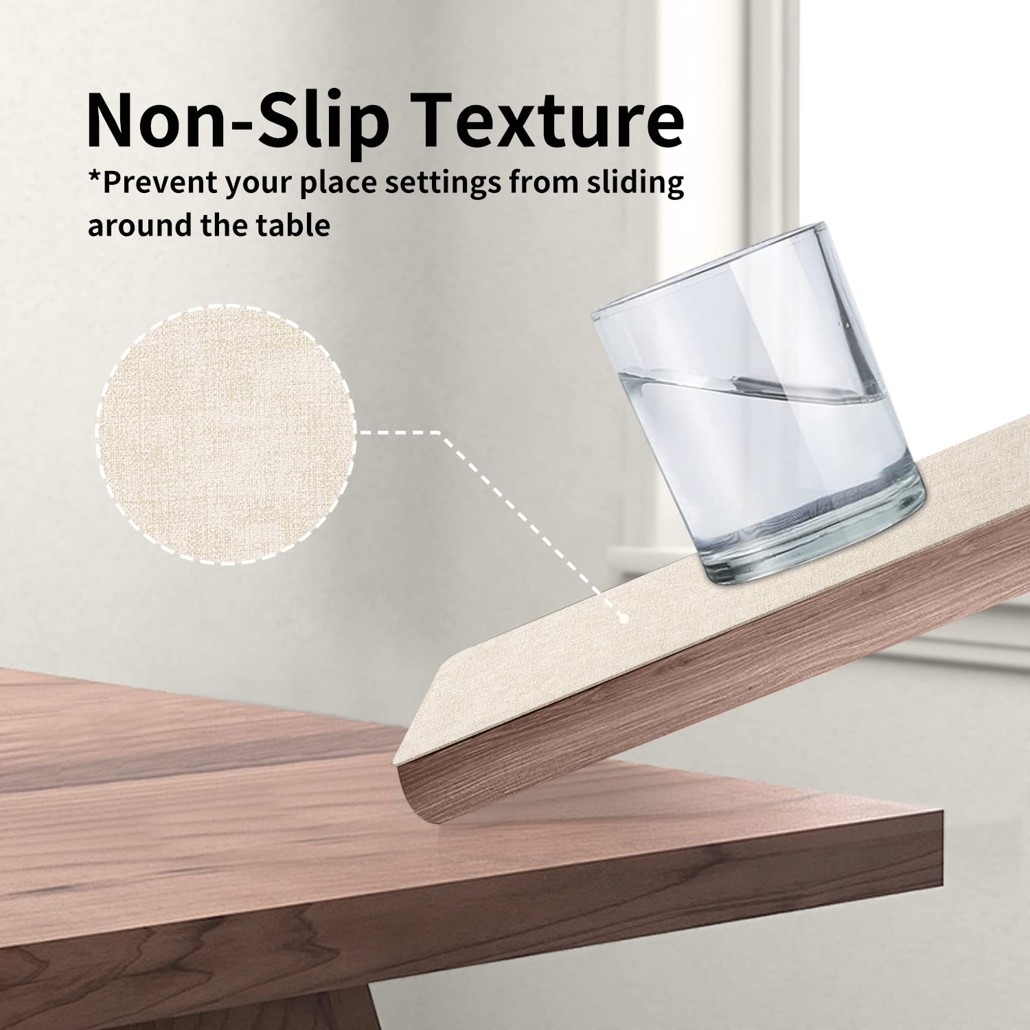 Maxpearl Faux Leather Placemats Set of 6 - Waterproof - Wipe Clean - Heat Resistant - Anti Slip Dining Table Place Mats, Suitable for Indoor & Outdoor Use, 17’’×12’’, Beige
