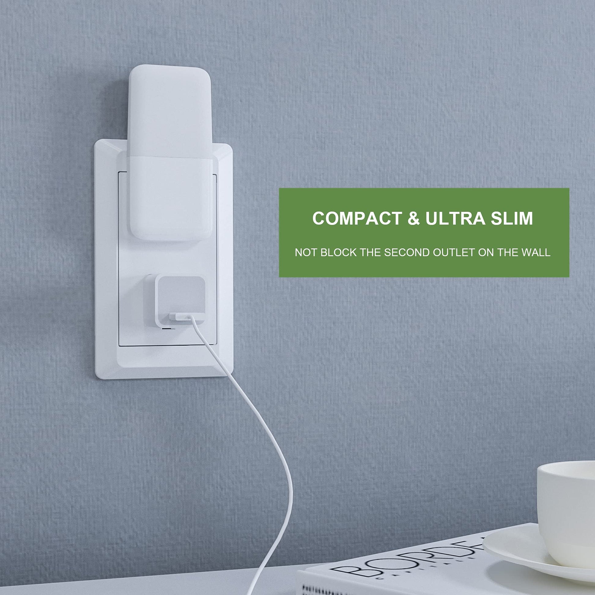 • Automatic Illumination: No need to turn on/off manually. With built-in smart light sensor, the night light automatically turns on at night, then turns off during daytime.