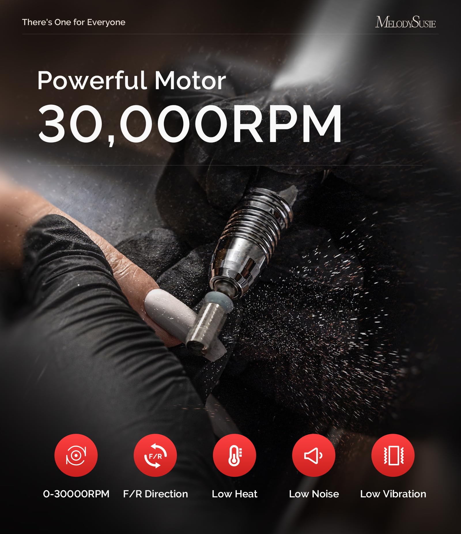 • Warmly Remind: Please use the nail drill machine according to our recommended speed: For Nail Prep: 8000-12000RPM/ For Sanding Band Use:>15000RPM/ For Gel Removal:>25000RPM/ For Shortening Nails:35000 RPM; The handle needs to be cleaned promptly, otherwise dust may block the heat dissipation holes causing the handle to become hot and smell, so it is recommended that you clean the handle regularly and store it prope