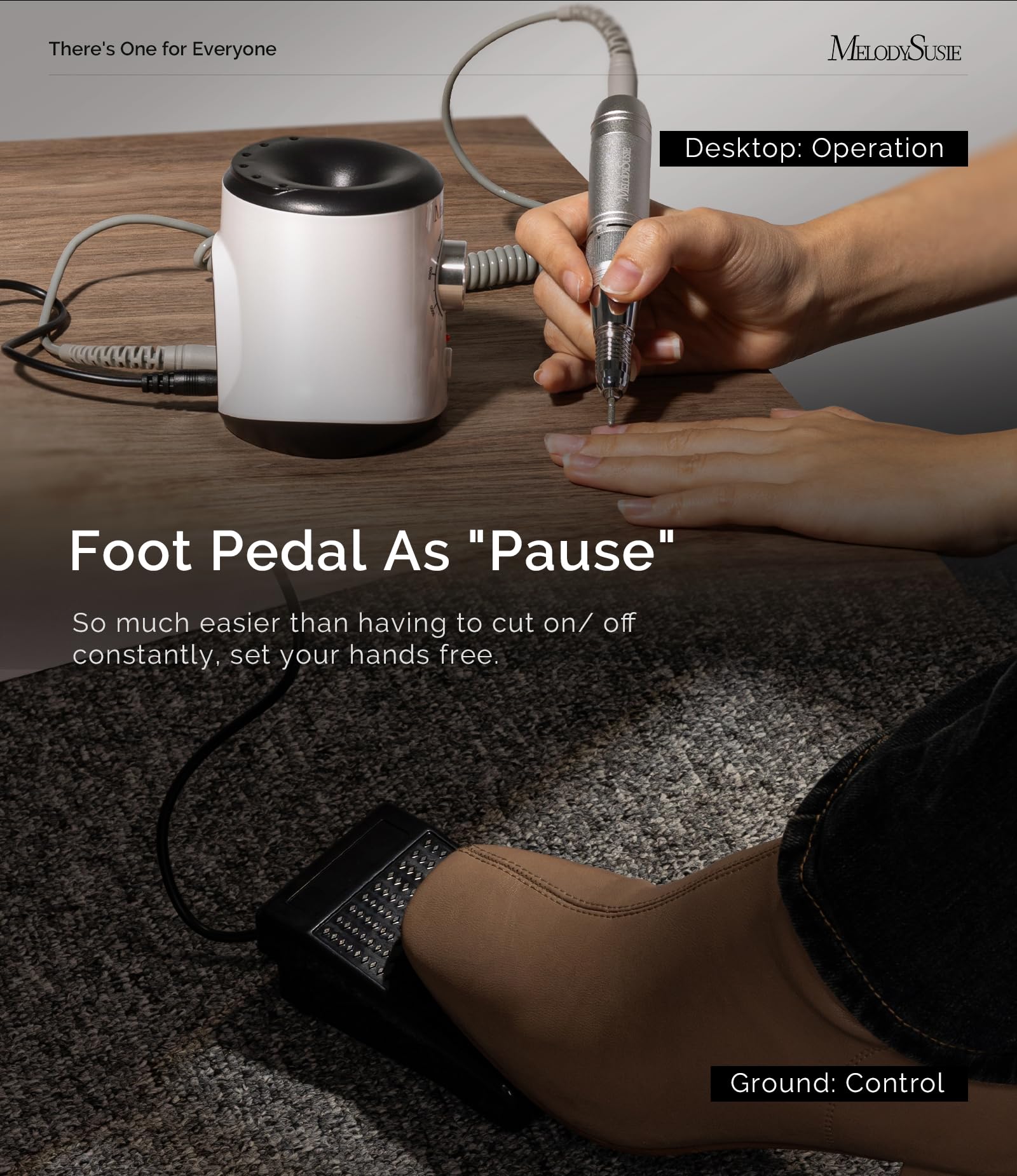 • Adjustable Speed & Rotation Directions: The speed dial can easily adjust the rotation speed from 0-30000RPM. Equipped with the f-forward and r-reverse buttons to change the direction of the rotating bit, which enables any right-handed or left-handed use. The foot pedal is so much easier than having to cut on/ off constantly. Our electric nail file is suitable for both professional use or beginners use at home.
