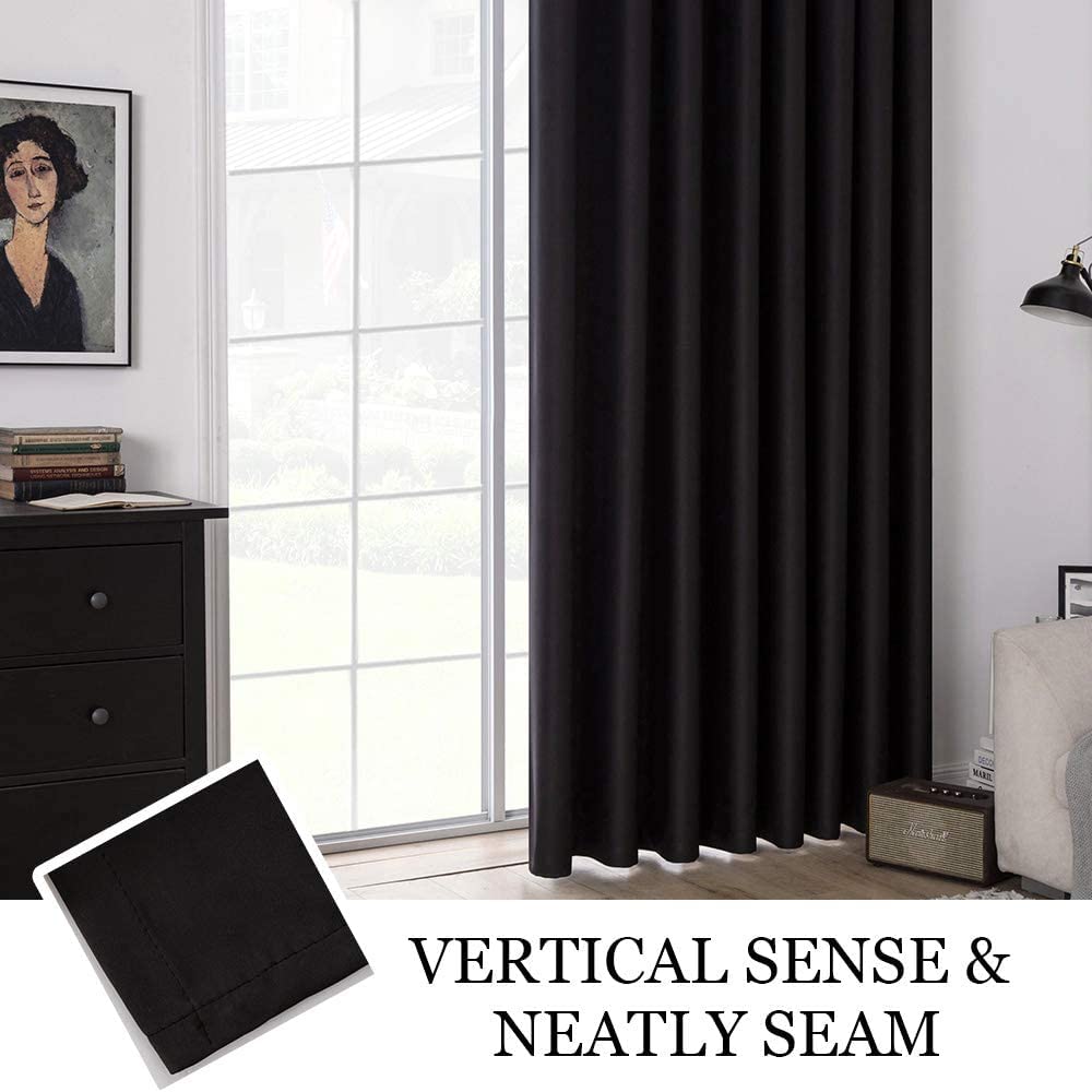 • Light Blocking: The wide curtain is made of high-quality polyester fiber woven with the triple-weave technology, making it super soft and heavy. It is thick enough that can block out most sunlight from entering the room which is especially good for late sleepers and night shifts meanwhile protecting privacy.