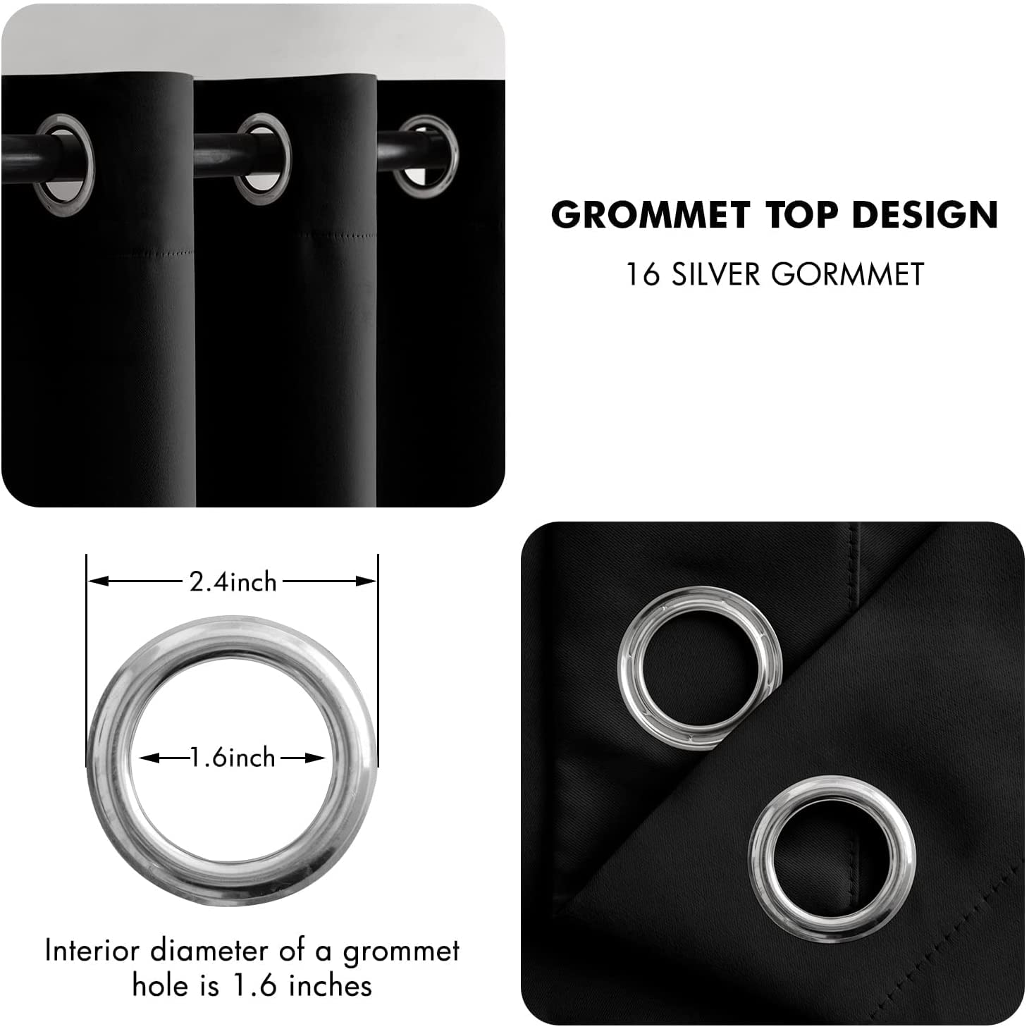 • READY MADE - Package contents ONLY 1 piece of high quality extra wide blackout curtain. Each blackout curtain measures 150 inches wide and 96 inches long which comes with nice silver grommets of 1.6 inches in diameter that fit most of the curtain rods. Well made grommets allow curtain to slide smoothly without hindrance.