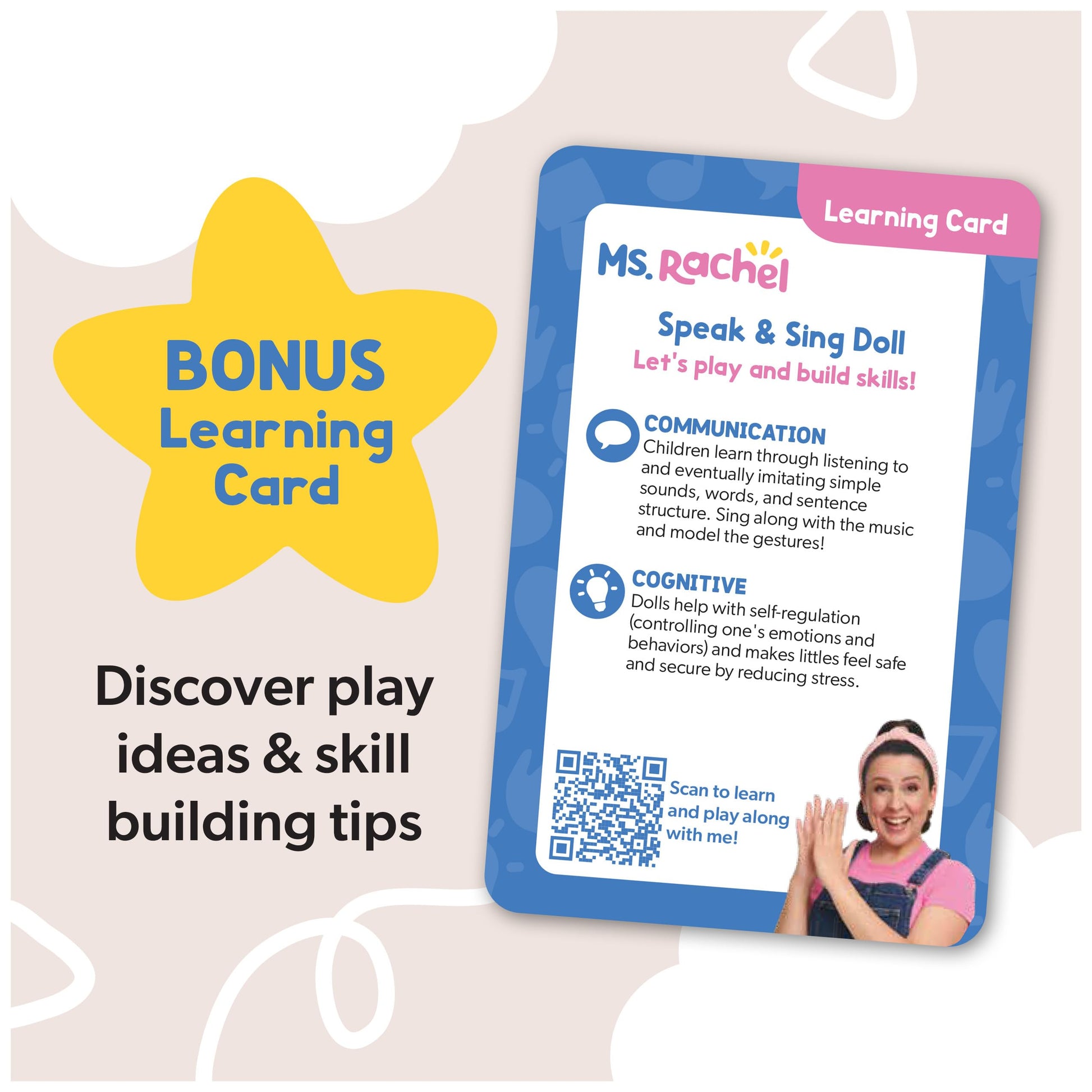 • OFFICIAL MS. RACHEL TOYS: Interactive touch-activated Ms. Rachel doll that plays 16+ signature phrases & 4 songs from the hit Ms. Rachel show