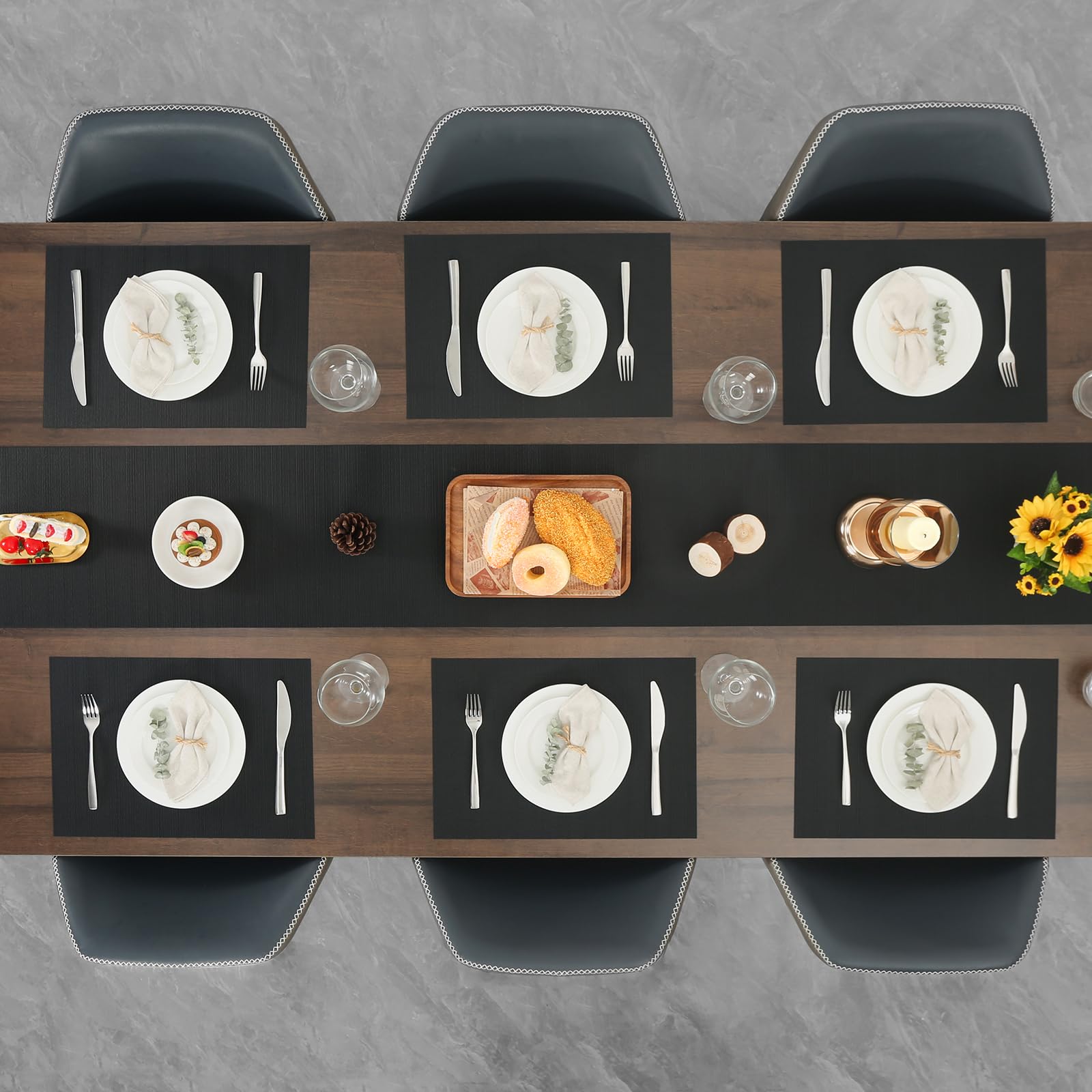 Myir JUN Placemats Set of 8, Vinyl Woven Placemats Place Mats Indoor Set of 8 Washable Table Mats Non-Slip Place mats for Dining Table (Black, Set of 8)
