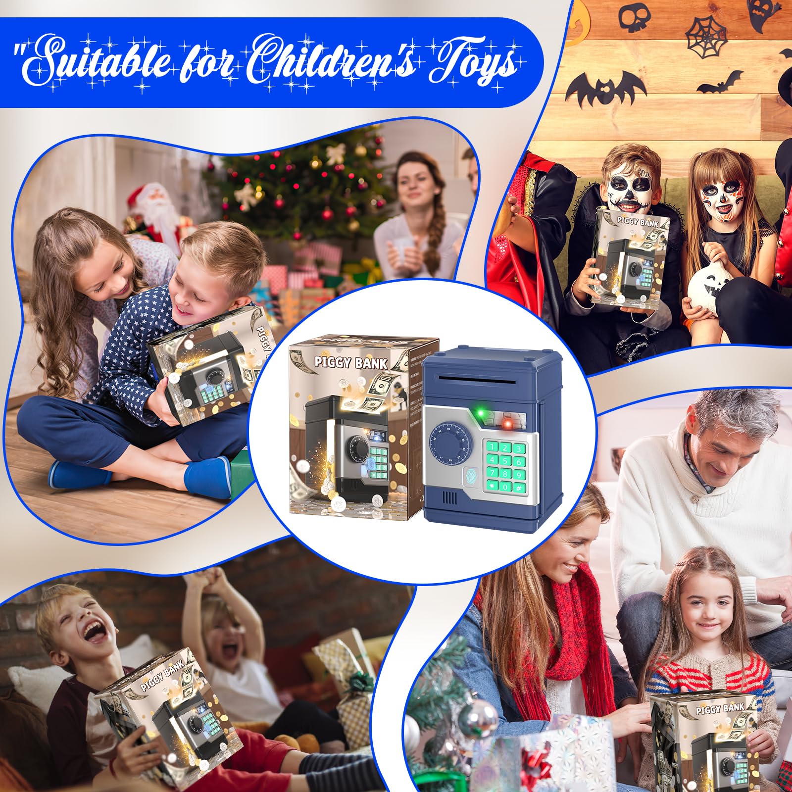 NAFEIV Piggy Bank, Automatic Electronic Piggy Bank for Kids Boys Girls with Password and Fingerprint Unlocking Simulation, Money Bank Kids Safe Toys for 3 4 5 6 7 8 9 10 Year Old Boy Girl (Navy)