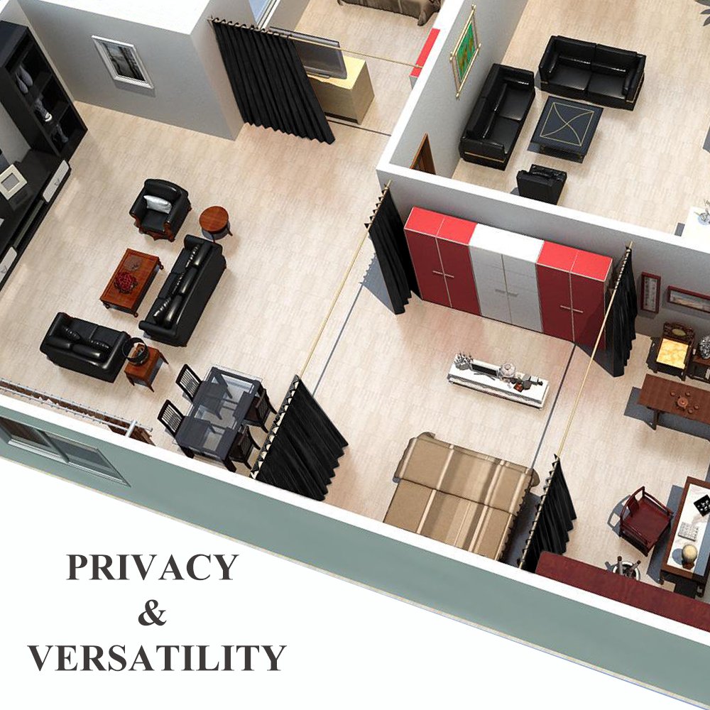• PORTABLE & SUITABLE: Room divider curtains are easily installed and easily packed up, moved, and reused! Perfect for City Loft, Office Space, Shared Bedroom, High Ceilings, Factories, Hospitals, Studio, Dorm, Storage Space, Cafes, hotels, etc.