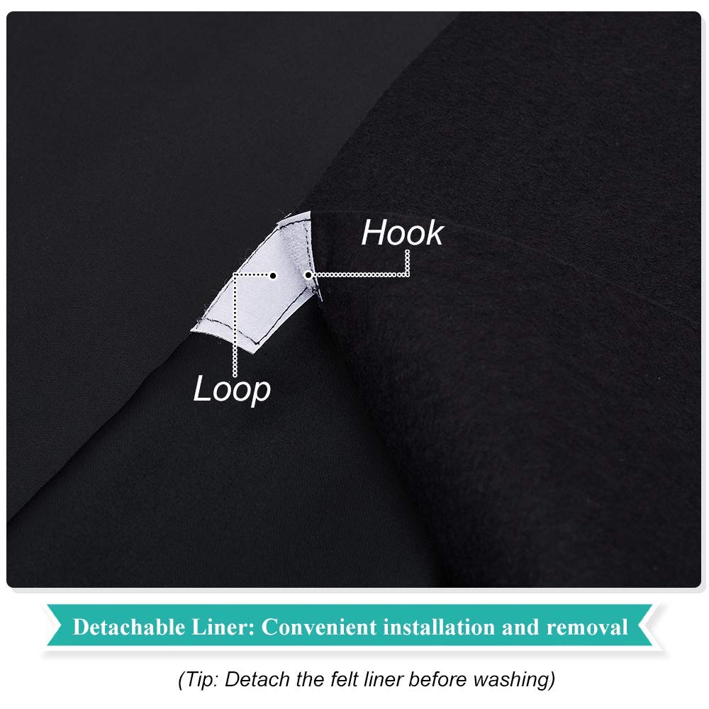 100% BLACKOUT: Curtains are made with 2 layers triple weave fabric and 1 layer detachable felt fabric liner. Thick enough to completely keep out the 100% SUNLIGHT and UV RAY. Offering you a real dark environment, a great choice for any room you would like to turn day into night.