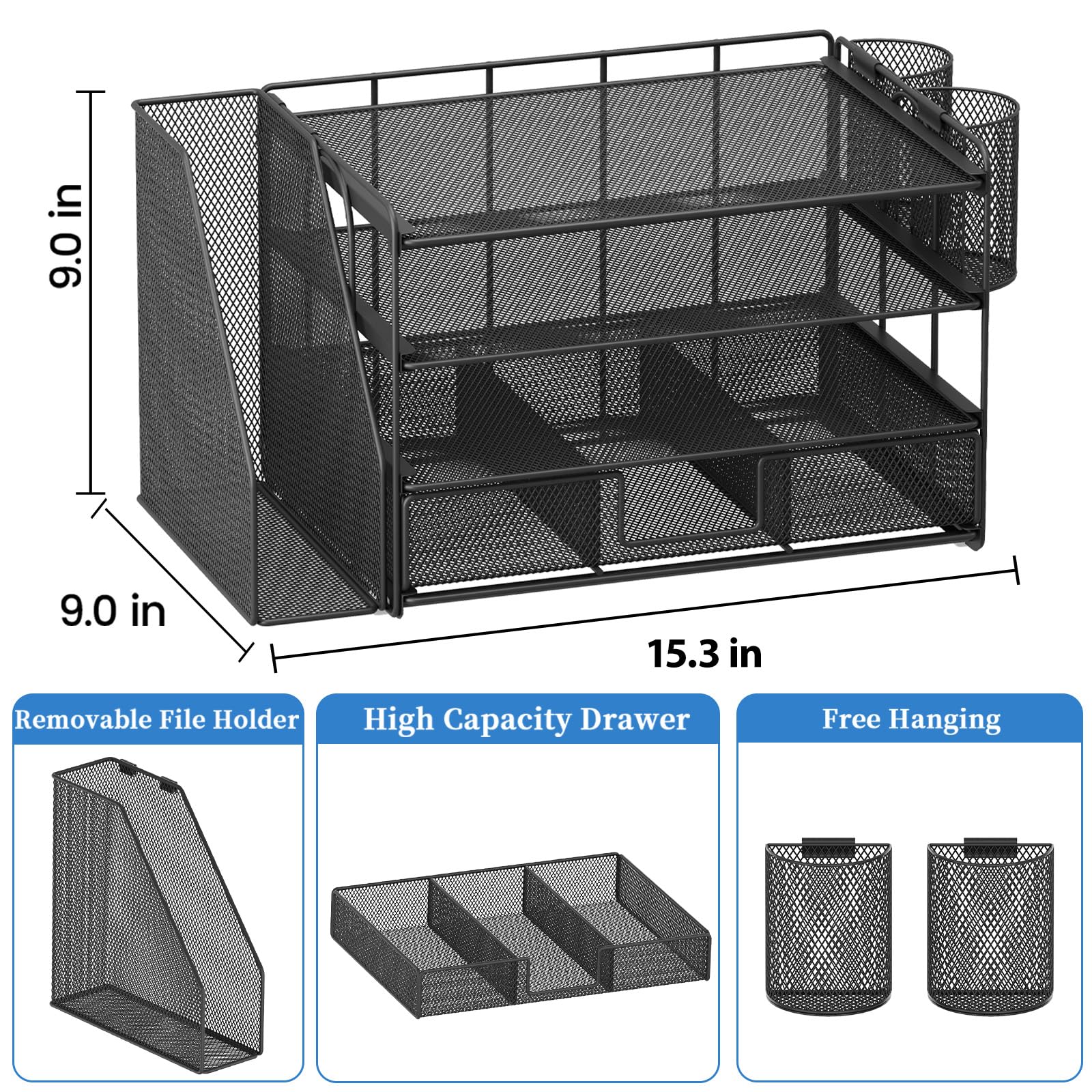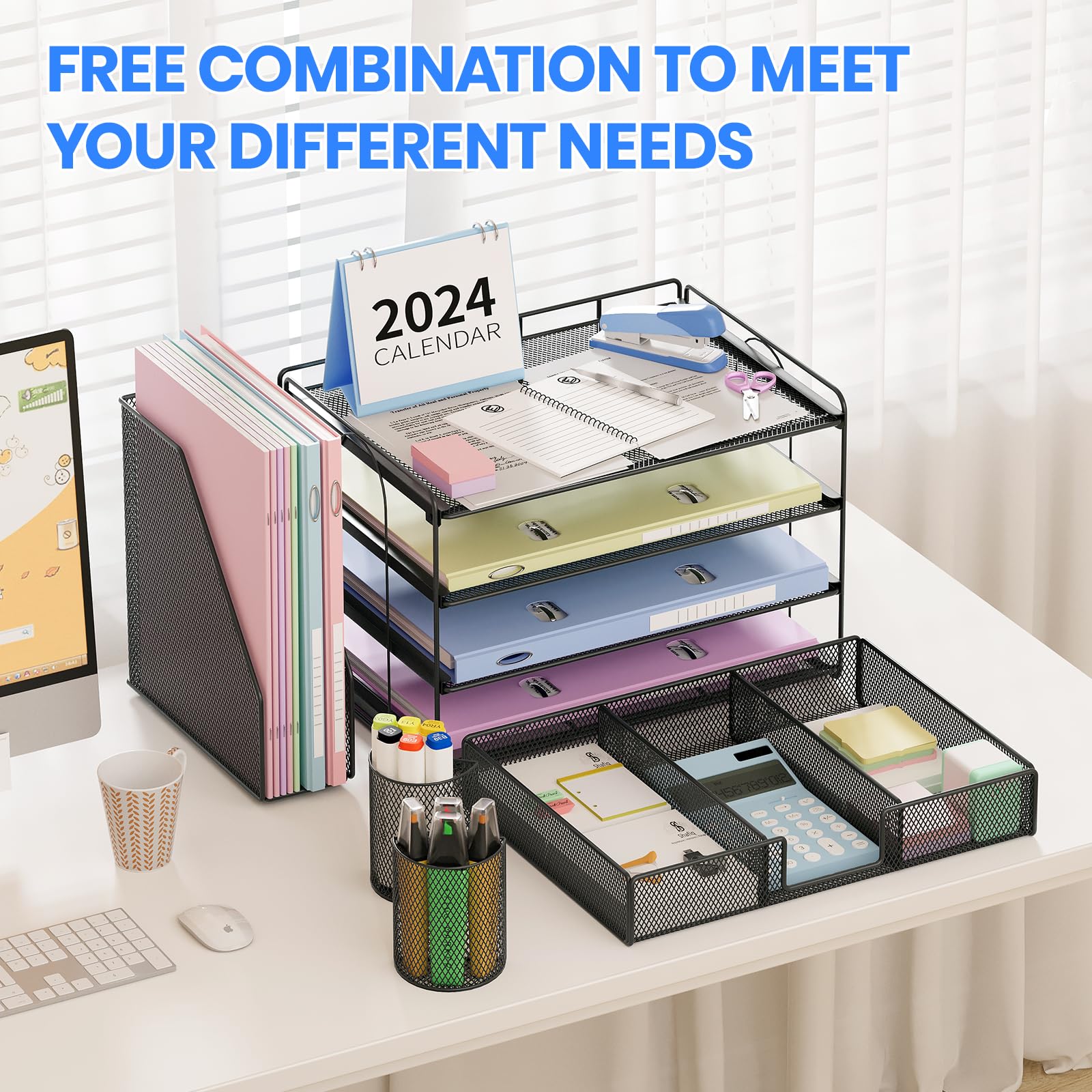 • 🎁【Premium Quality】Crafted from high-quality industrial-strength steel wire mesh and reinforced with a solid steel frame, our desk file organizer is built to last. You can trust that it will withstand the test of time and keep your workspace organized for years to come
