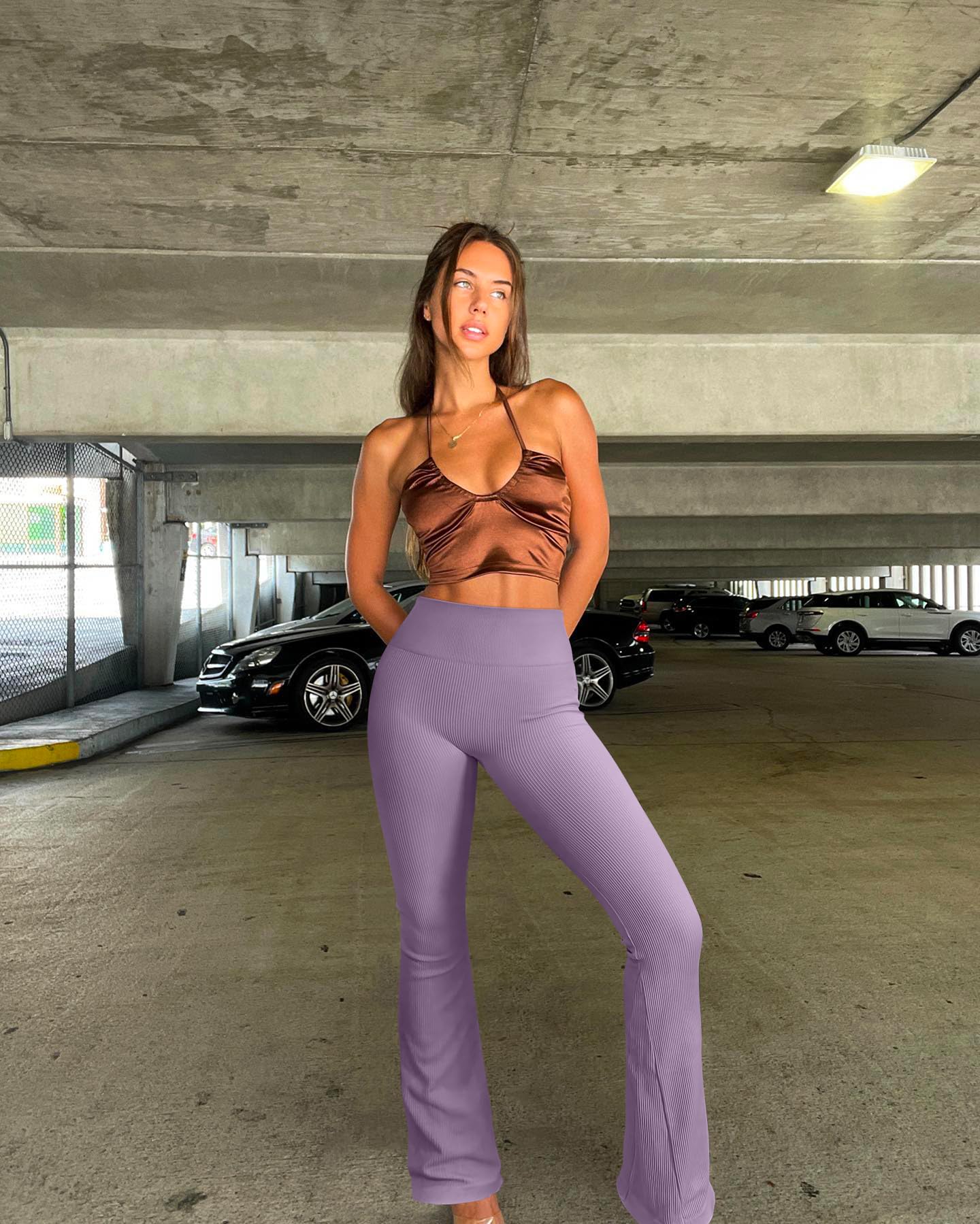 OQQ Women's 2 Piece Yoga Pants Ribbed Seamless Workout High Waist Bell Bottoms Flare Leggings