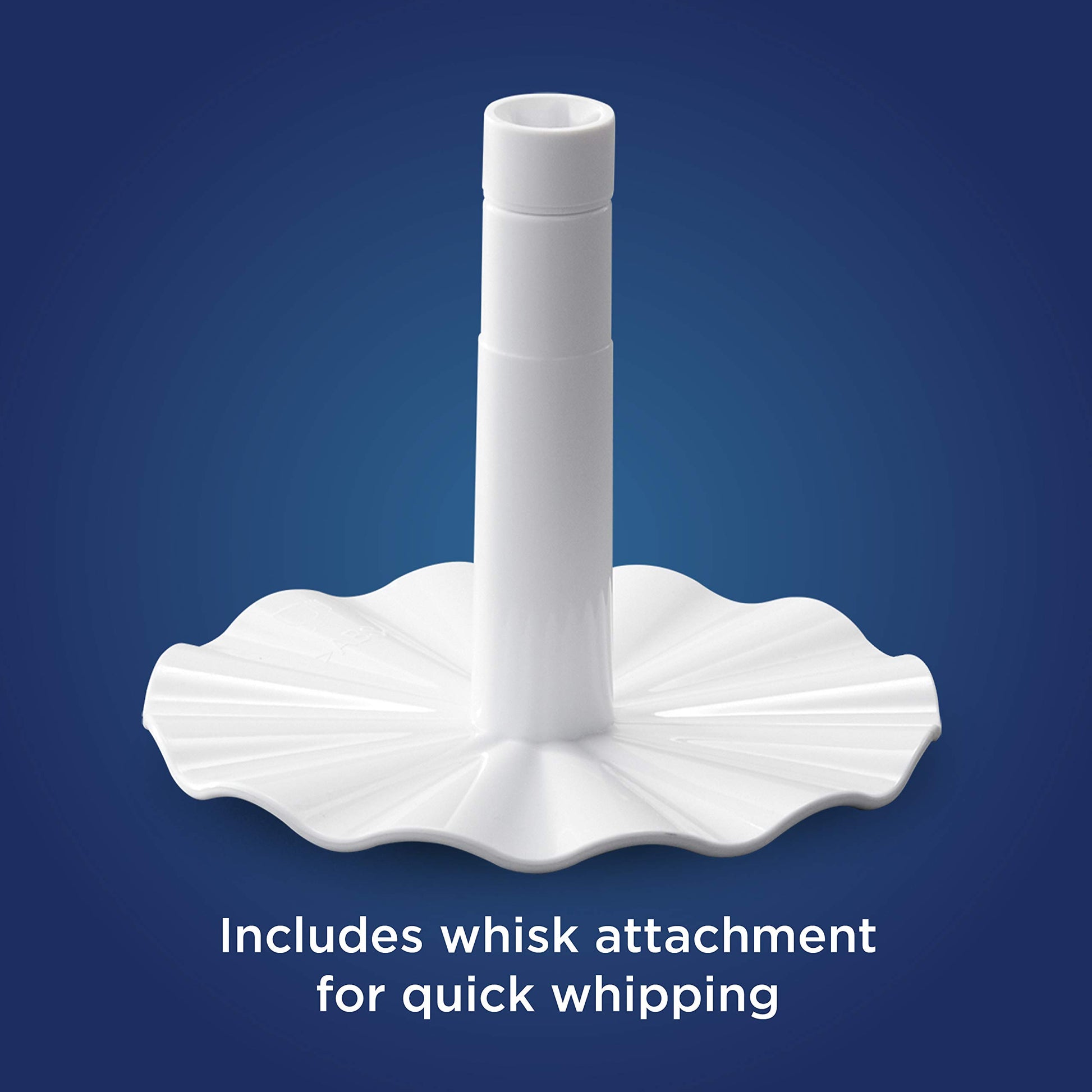 MORE GREAT FEATURES: Includes whisk attachment for quick whipping, whisking, and baking needs; convenient measurement markings on the bowl, dual stainless steel blades; and a powerful 250-watt motor