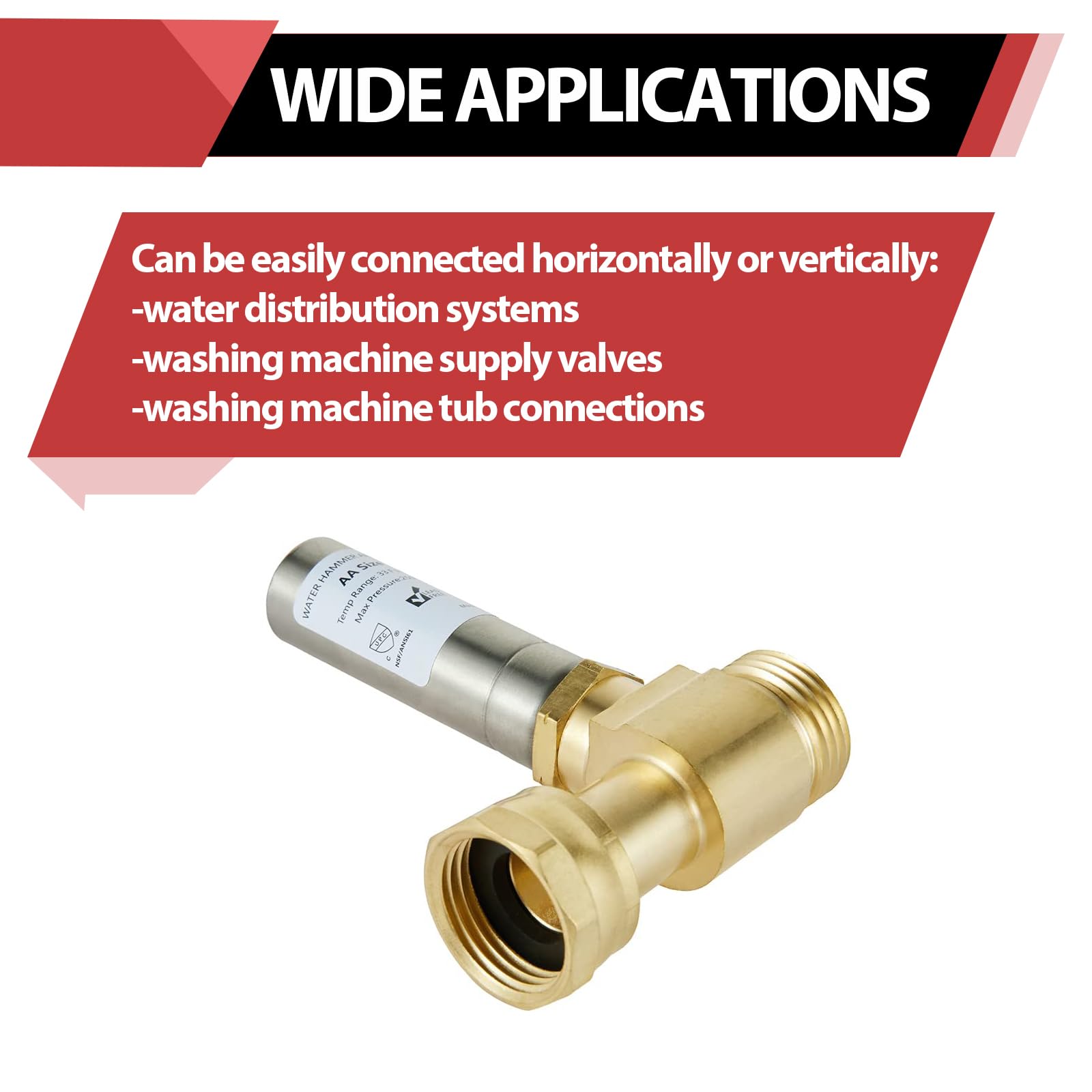 • 2 Pieces Stainless Steel Water Hammer Arrester For Washing Machine Supply Valves or Directly to Washing Machine Tube Connection: