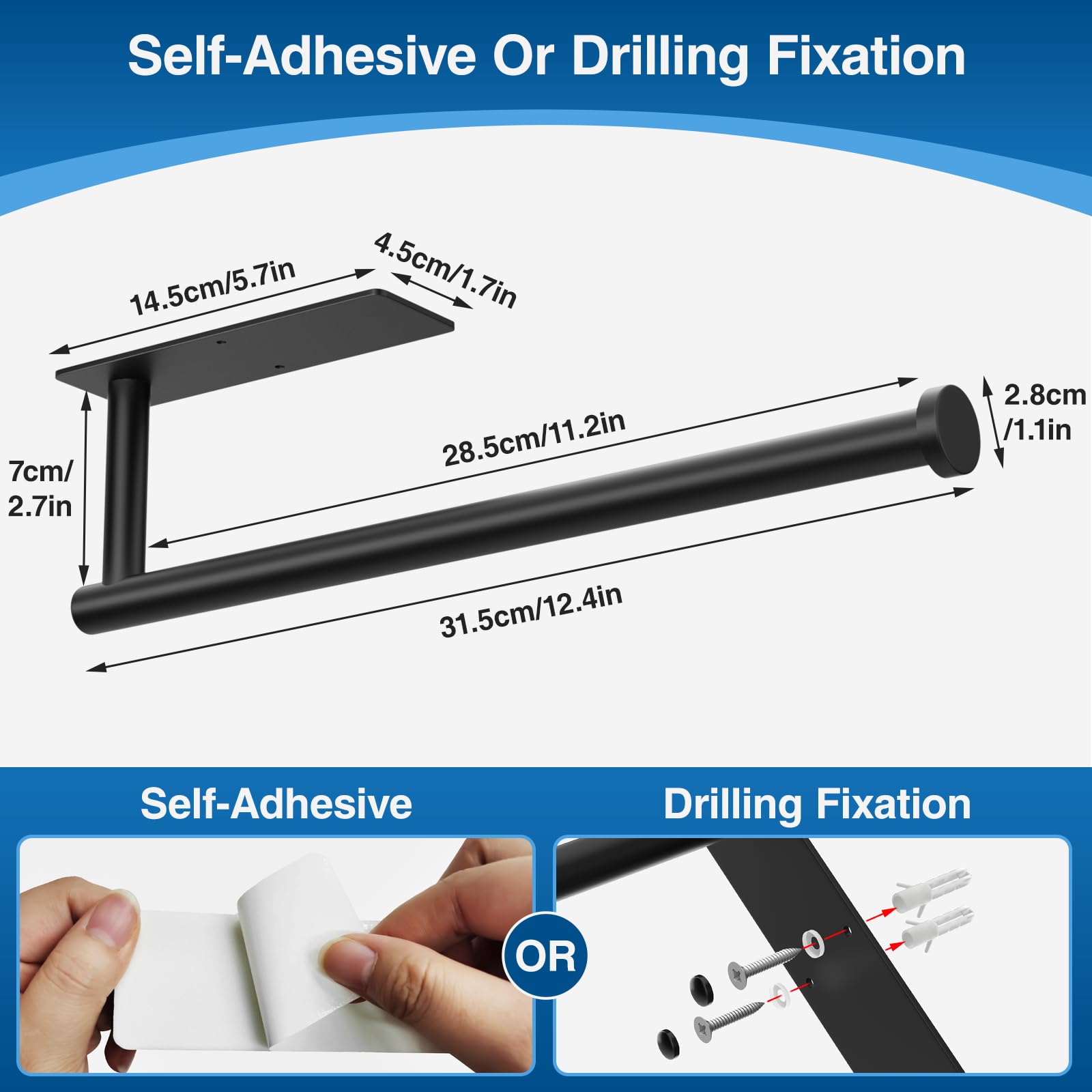 • Easy Installation: There are two ways to install this paper towel holder, self-adhesive or drilled, you can freely choose the appropriate installation method according to your wall or cabinet situation.