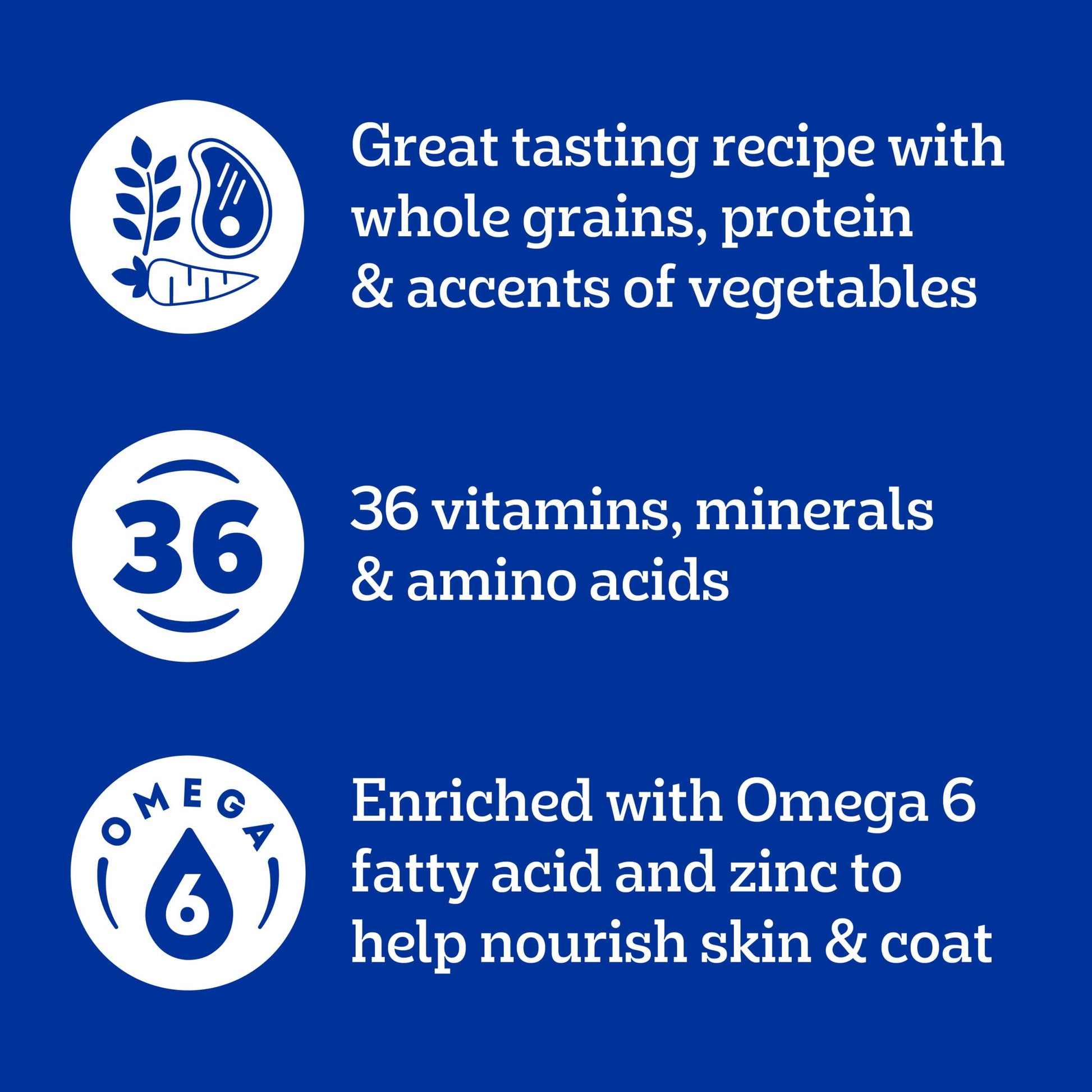 • Supports Healthy Skin and Coat: This dry dog food recipe is enriched with Omega 6 Fatty Acid and Zinc to help nourish a healthy skin and coat