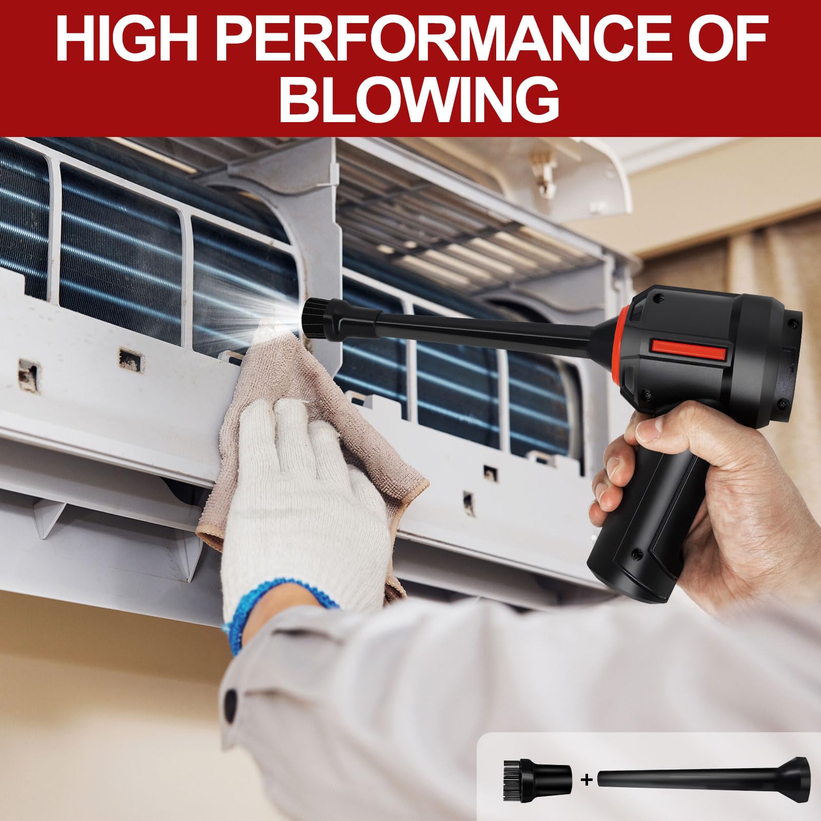 • REUSABLE AIR DUSTER & MINI VACUUM: Please forget the disposable compressed gas duster. No more need disposable air cans because you can use this air duster as many times as you want. Vacuum cleaner comes with 6000mAh rechargeable batteries, offering a 10W fast-charging system which can get fully charged in only 3 hours to operate for up to 25 minutes at a stretch, even at the highest output state.