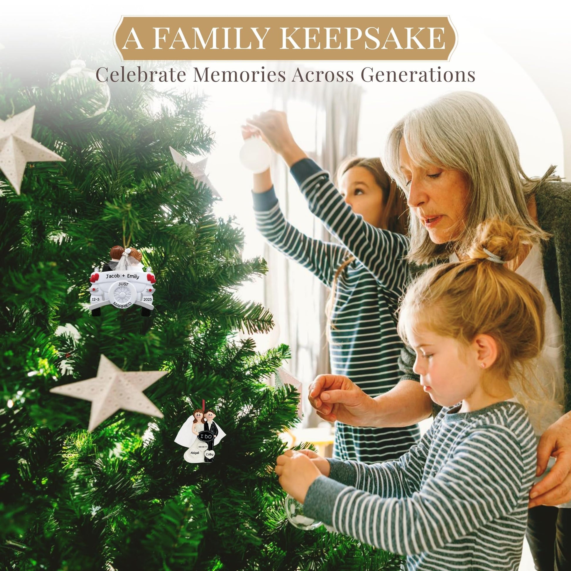 Personalized Wedding Christmas Ornament 2025 | Free 24h Customization | Laser Engraved Couple Christmas Ornaments for Tree | Custom Gift Wrapped Just Married Car Keepsake for Newly Weds, Bride & Groom