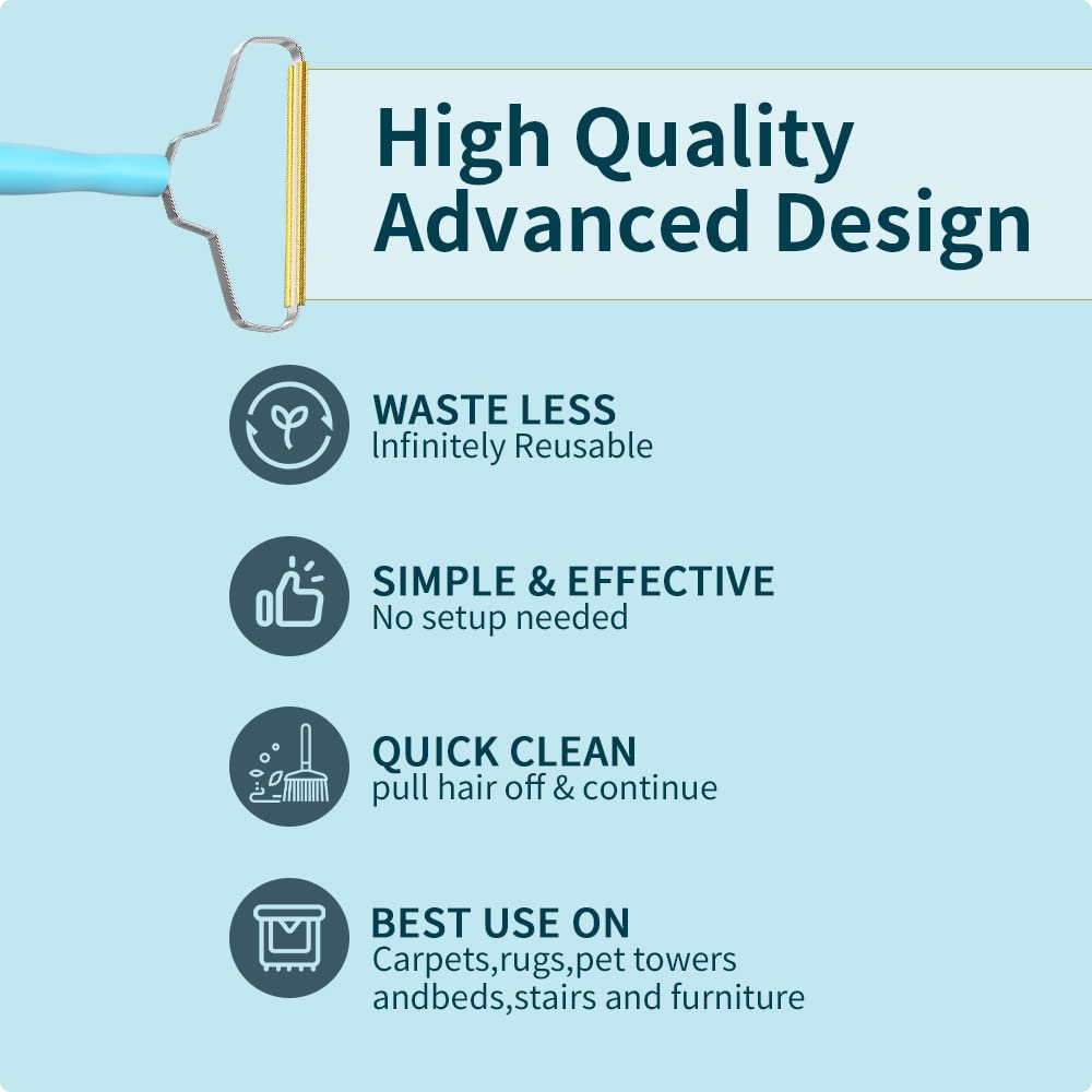 Pet Hair Removal Tool,BSIWWO Cleaner Pro Pet Hair Remover,Multi Fabric Edge and Carpet Rake,Pet Hair Remover for Couch,Dog Hair Remover and Cat Hair Remover for Rugs,Couch&Pet Towers(Blue)