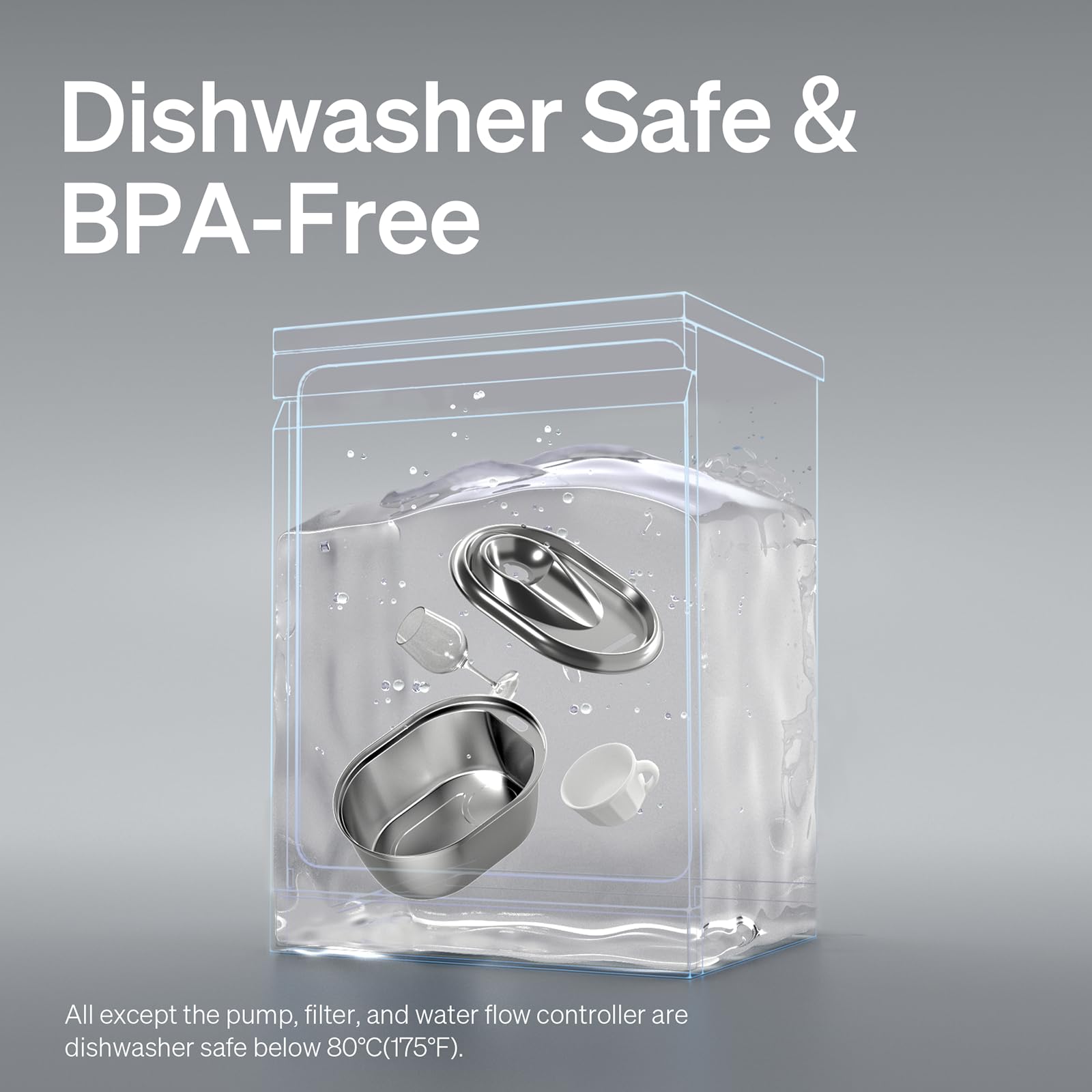 • Durable 304 Stainless Steel & Dishwasher Safe: PETLIBRO cat water fountain made of 304 stainless steel, it is BPA-free, rust and corrosion-proof. Only the stainless steel part can be washed in the dishwasher.