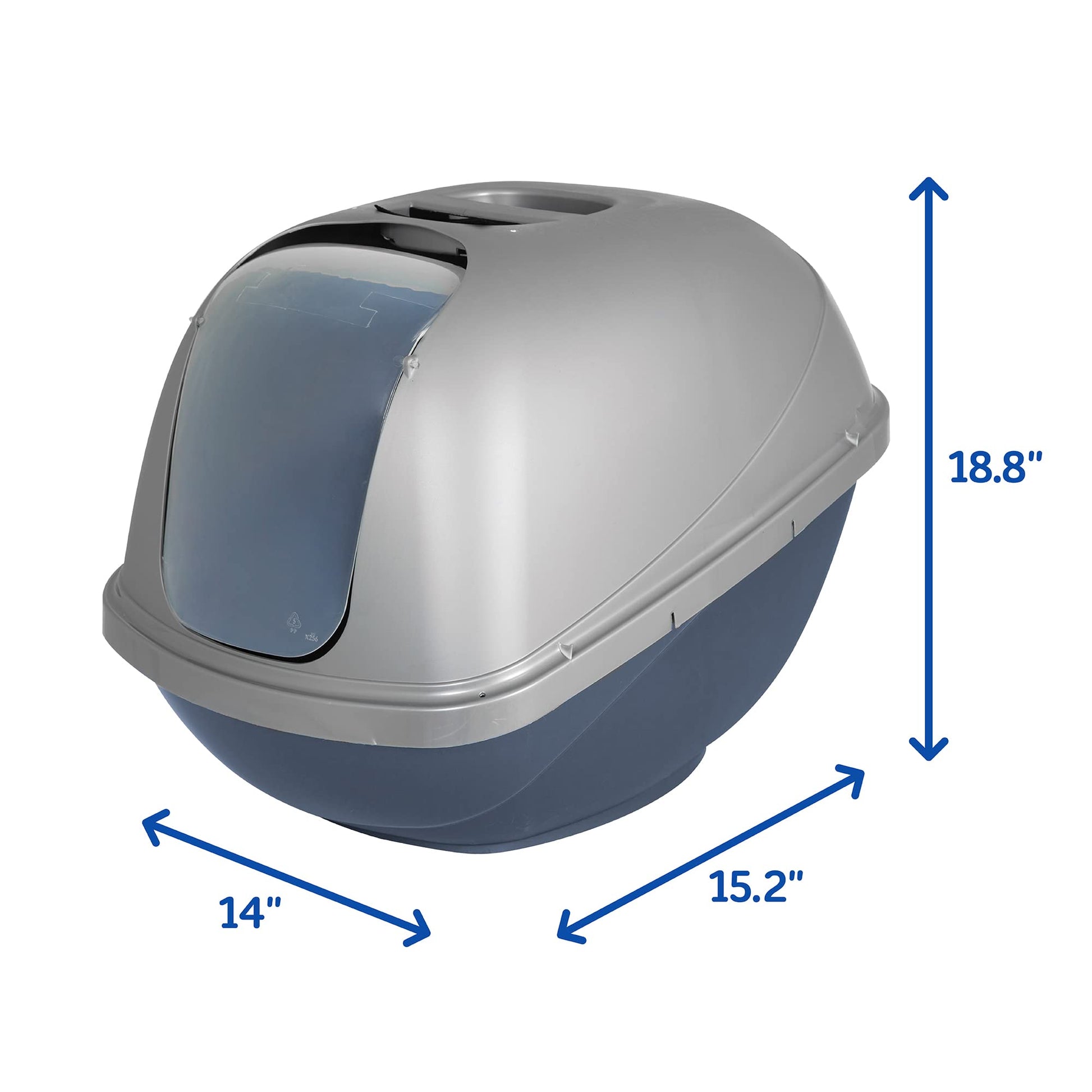 • COVERED LITTER BOX: The covered kitty litter pan helps reduce odors and features an odor-absorbing replaceable carbon filter that keeps homes smelling fresh. Made of durable non-toxic plastic. Large size: 18.8' L x 15.2' W x 14' H