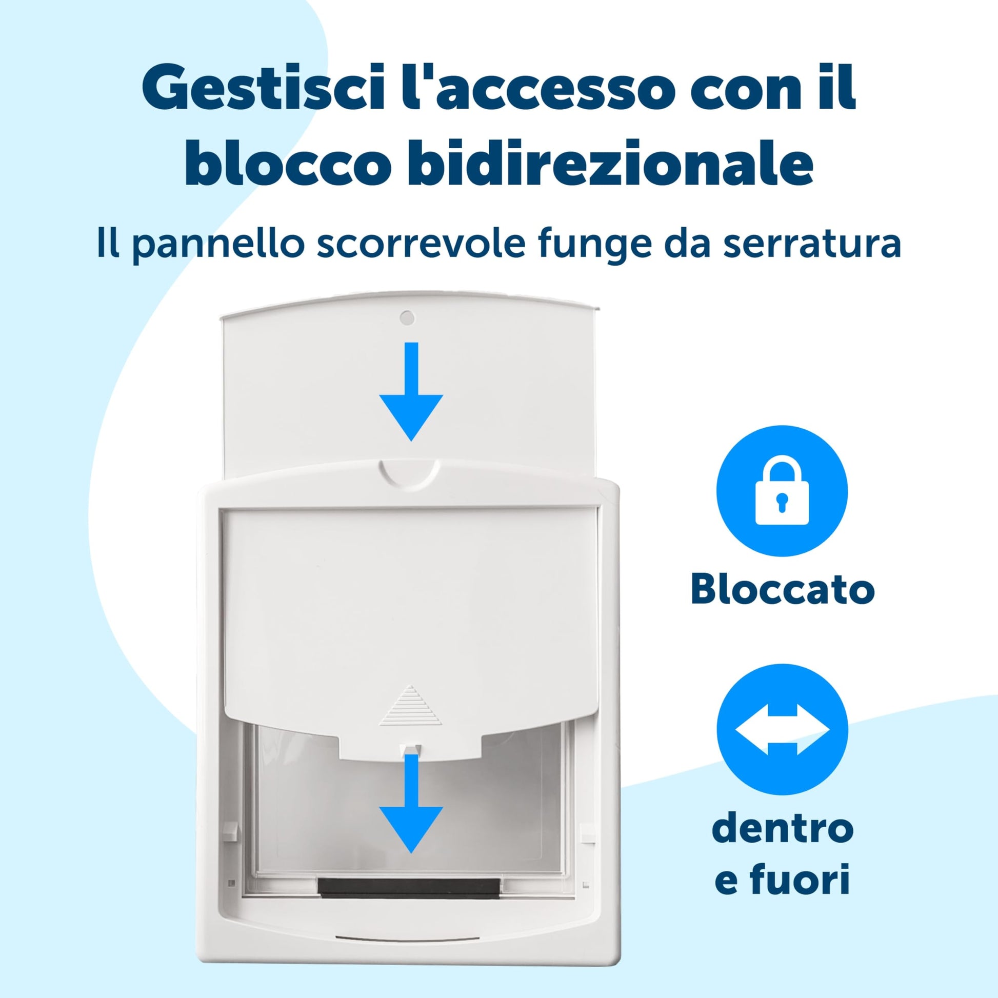 • CLOSING PANEL: The 2-way pet door provides pet parents the option of snapping on a closing panel from the inside for convenient control over their pet’s coming and going