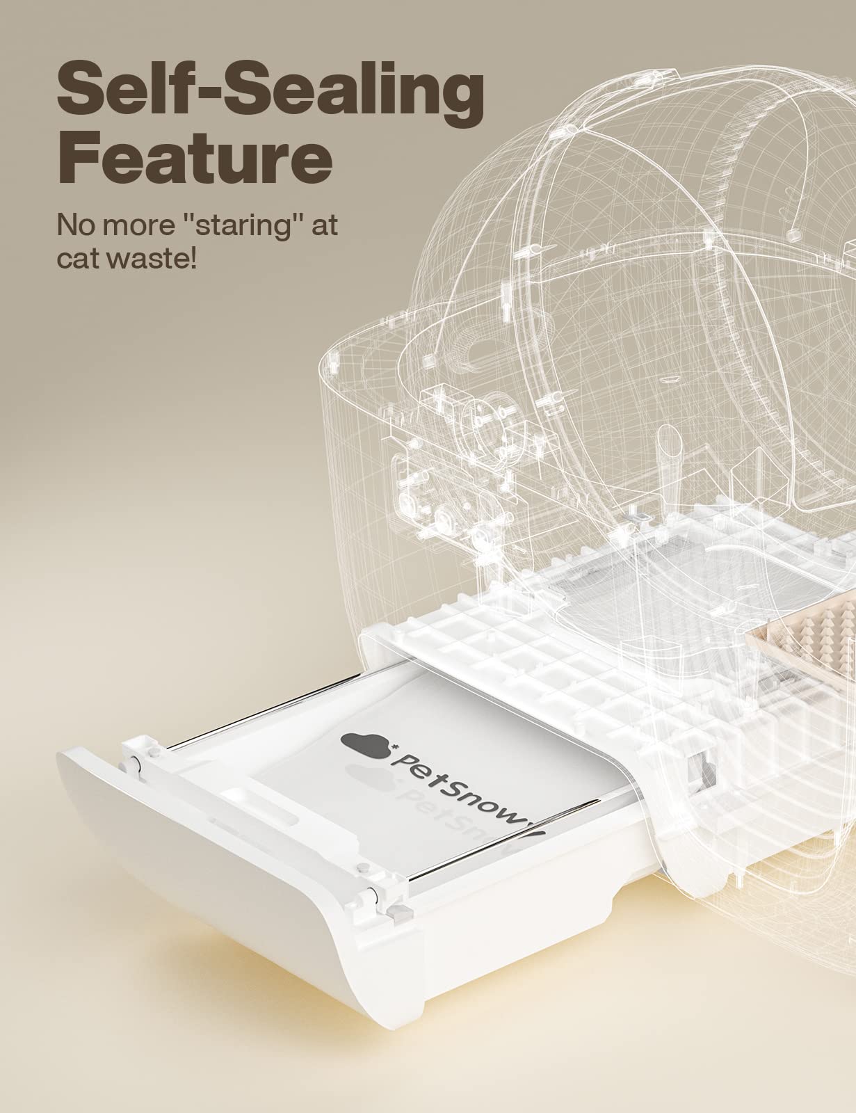 PetSnowy SNOW+ Cat Litter Box Liners, Self-Sealing Waste Drawer Bags for Automatic Cat Litter Box, 120 Pcs