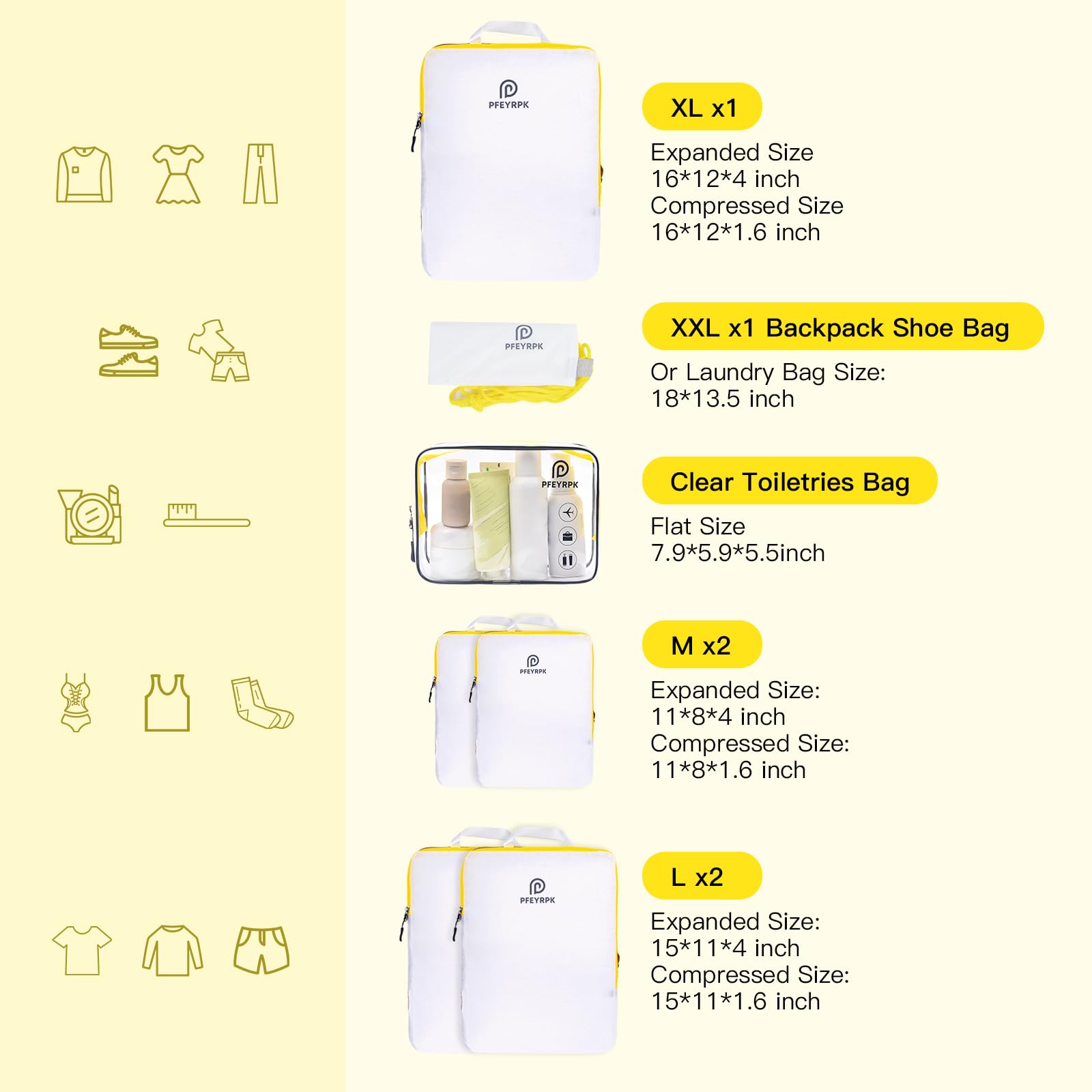 PFEYRPK Lightweight Compression Packing Cubes for Suitcases, Compressible Expandable Travel Packing Organizer with Clear Toiletries and Backpack Bag, Travel Essentials for Carry on Luggage 7 Set