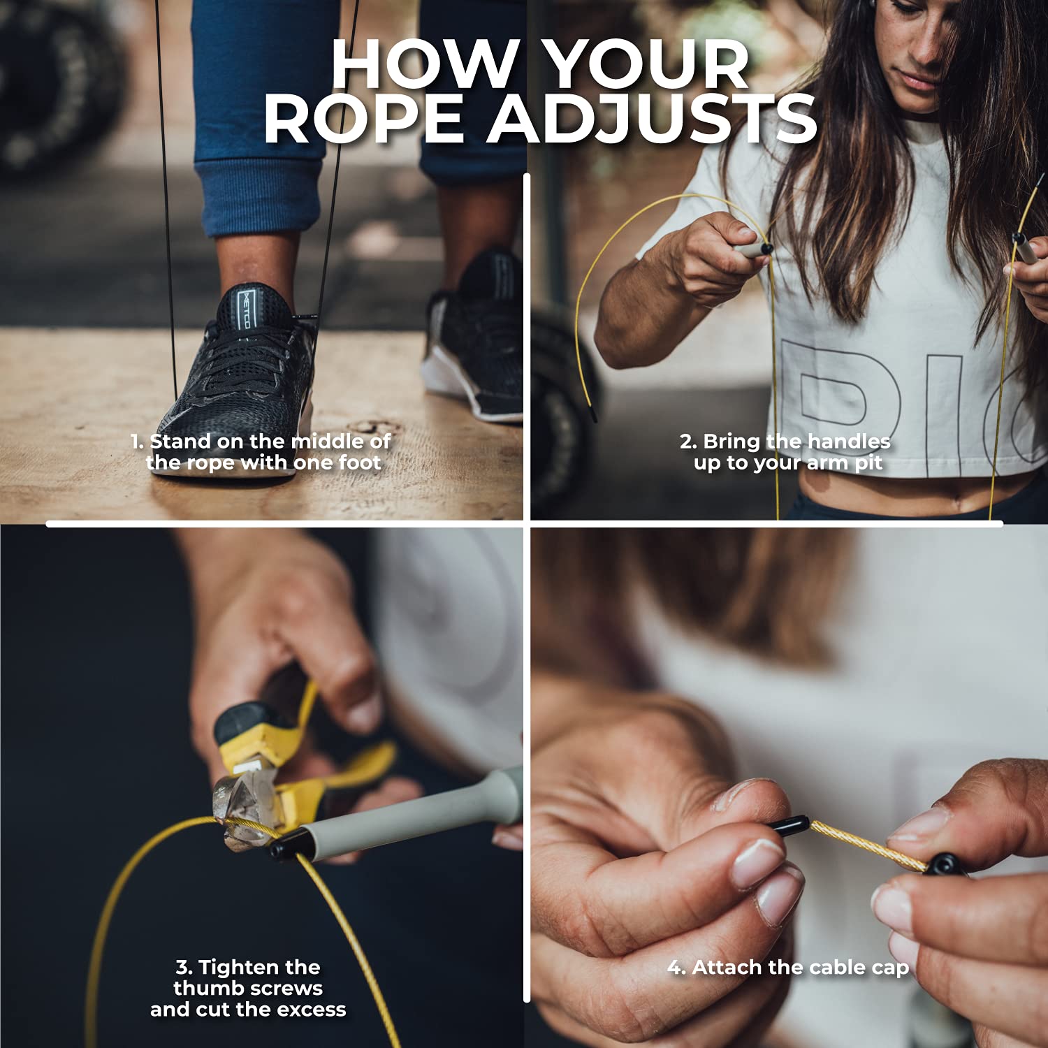 Note: Use our jump rope on non-abrasive floors for optimal cable life.