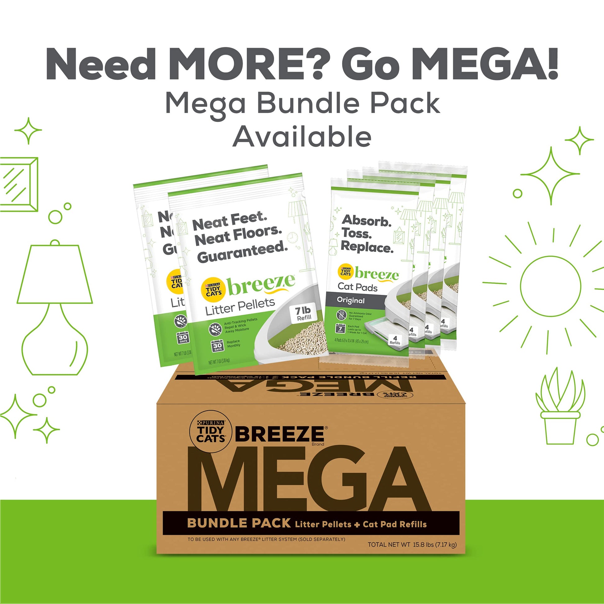 Details: Give your cat a private place to do her business with outstanding kitty litter odor control when you use a Purina Tidy Cats Breeze hooded cat litter box system. Our innovative system makes it easy to check kitty litter care off your to-do list. Dehydrating, mess-minimizing pellets wick away moisture from solid waste and separate urine for quick and easy cleanup. The specialized kitty litter pellets are 99.9 percent dust free and minimize tracking. Neat Floors. Neat Feet. To help keep her comfortable, our disposable, super-absorbent cat pads absorb urine, so the covered cat litter box remains dry, and to prevent ammonia odor for seven days for one cat. A convenient hood keeps your cat discreetly hidden from sight as she uses her cat litter box. The hinged design gives you easy access when it's time to change the non-clumping litter, and a slide-out drawer lets you quickly toss and replace the pads below for a kitty litter box you'll both love.