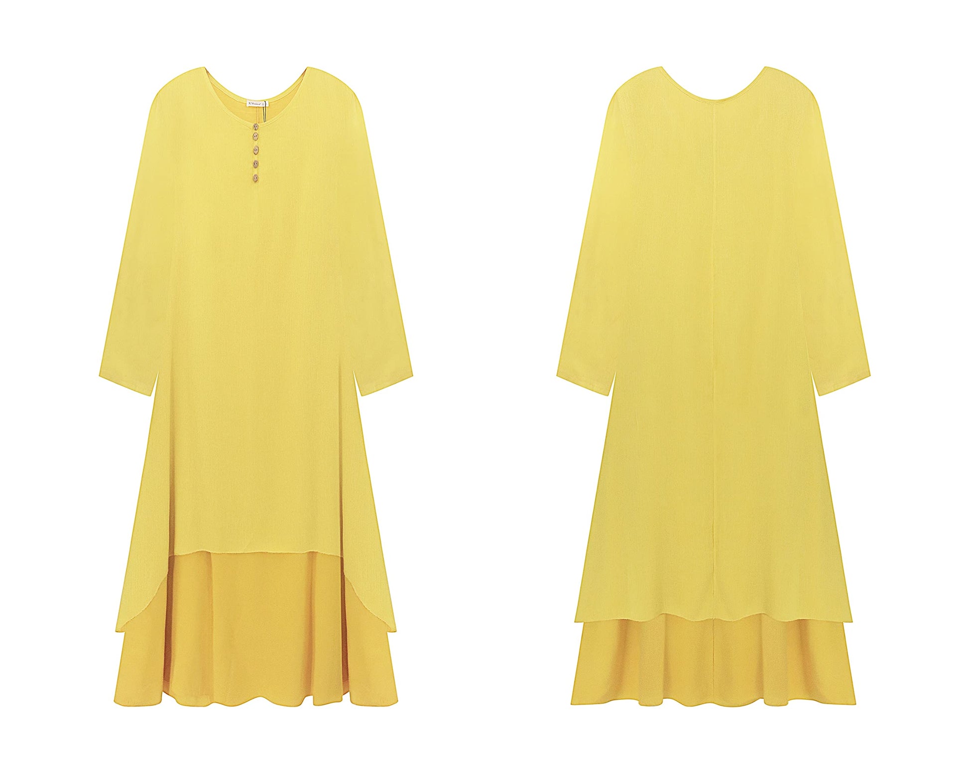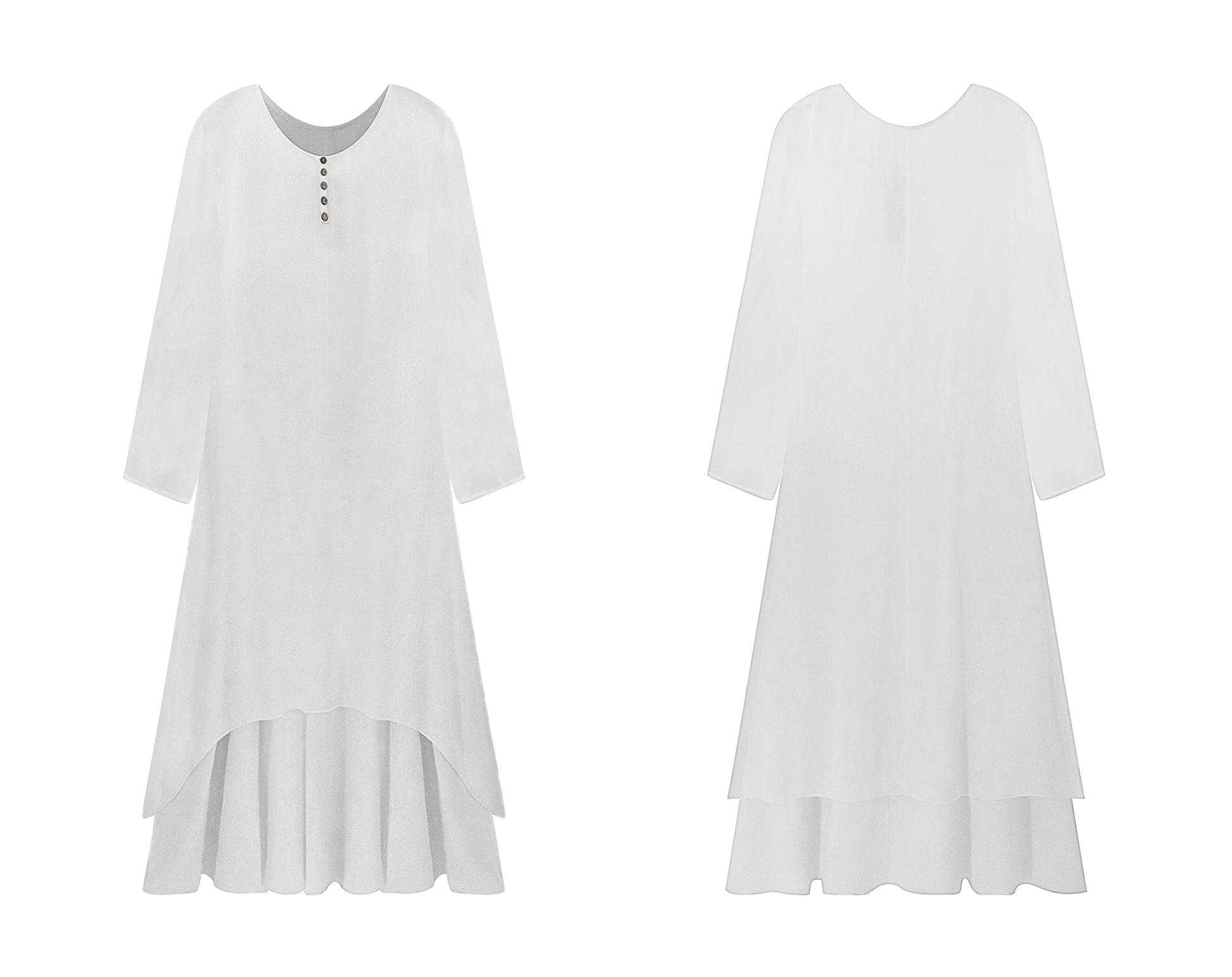 • Long Sleeve, V-Neck and Buttons Decoration. Double Layered Irregular Hem Dresses