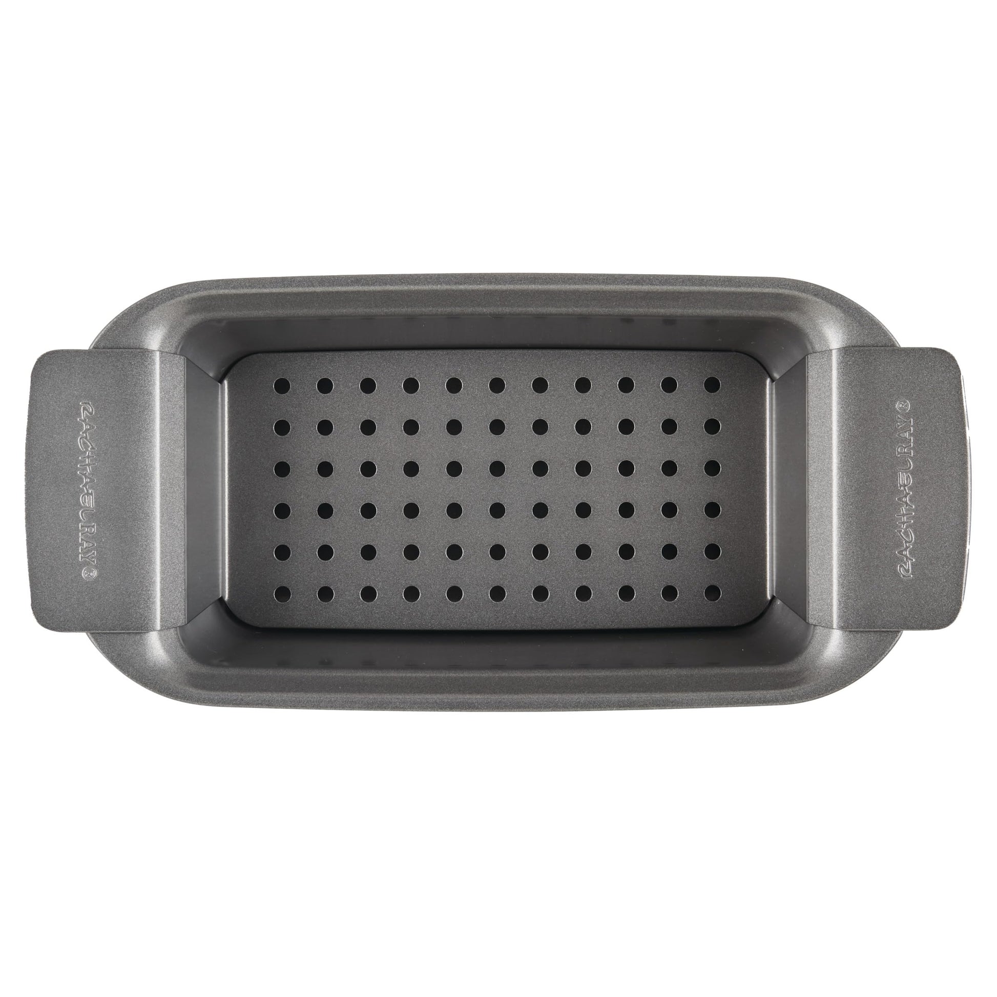 Rachael Ray Bakeware Meatloaf/Nonstick Baking Loaf Pan with Insert, 9 Inch x 5 Inch, Gray