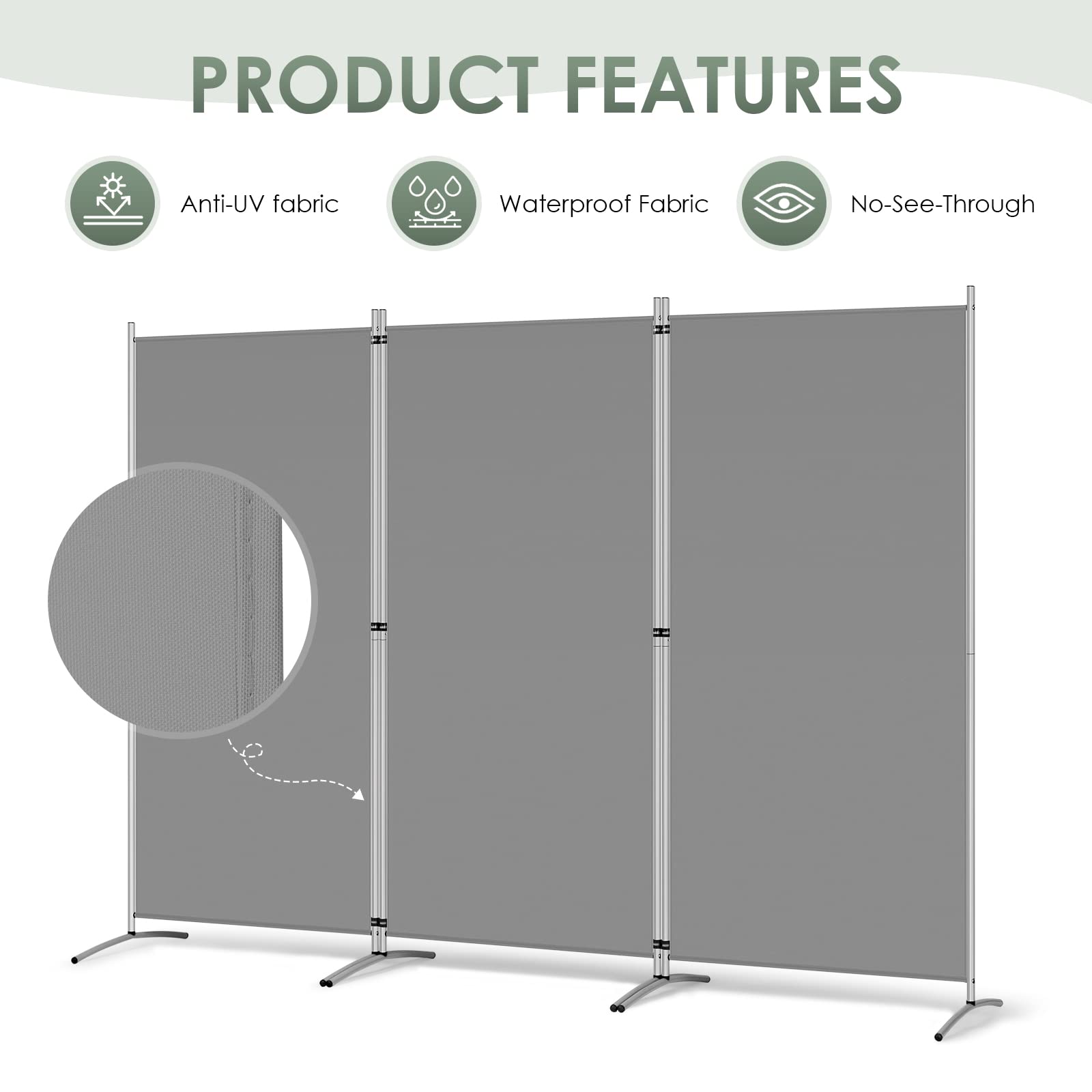 • High Quality & Durable Fabric: UV protected and Waterproof Fabric for easy to clean the screen divider.This privacy screen divider with steel frame which is durable and stable.