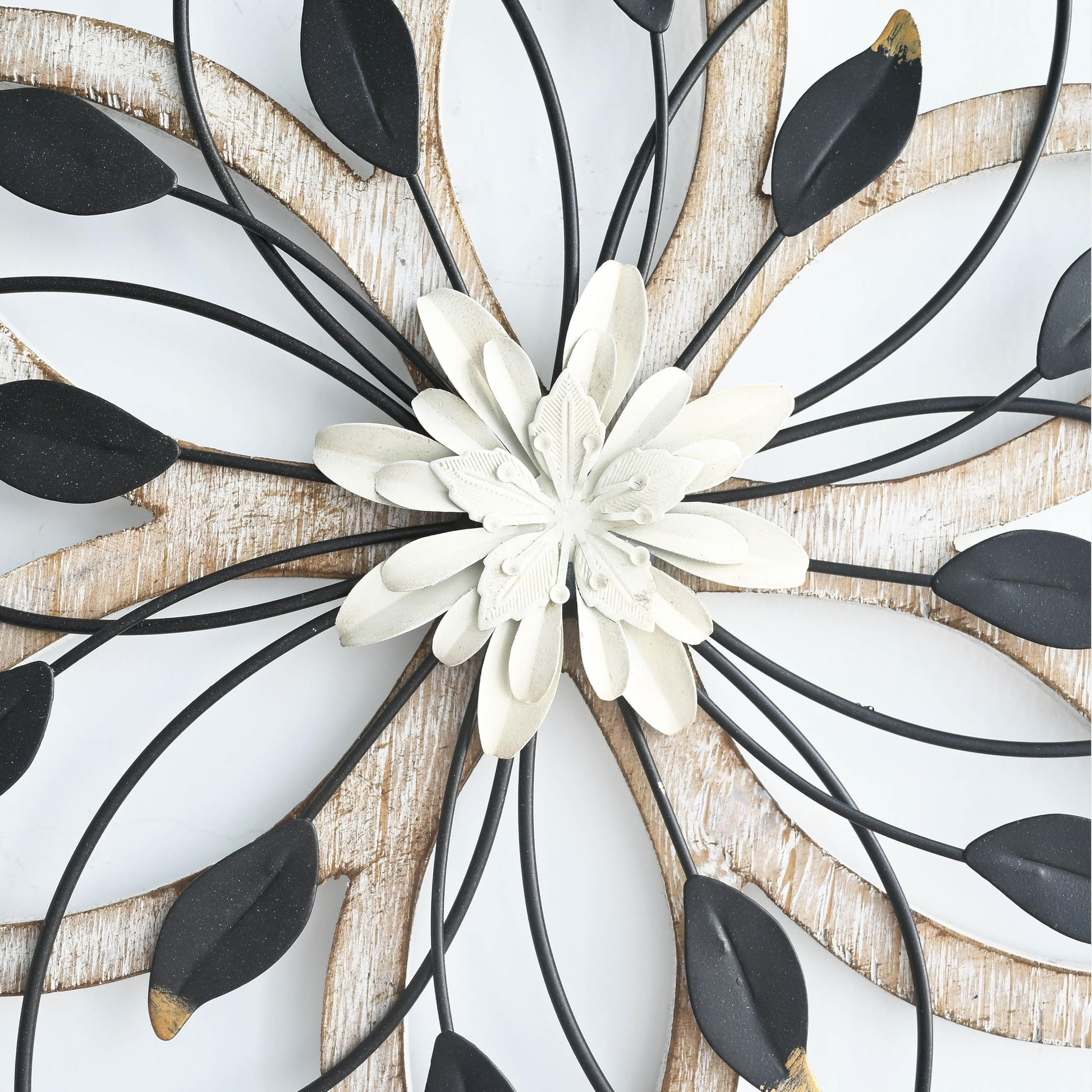 • LAYERED METAL FLOWER WALL DECOR:This charming piece features a layered flower with distressed white metal petals at its center.Adding another layer of dimension is a metal leaves accent with gold tips.