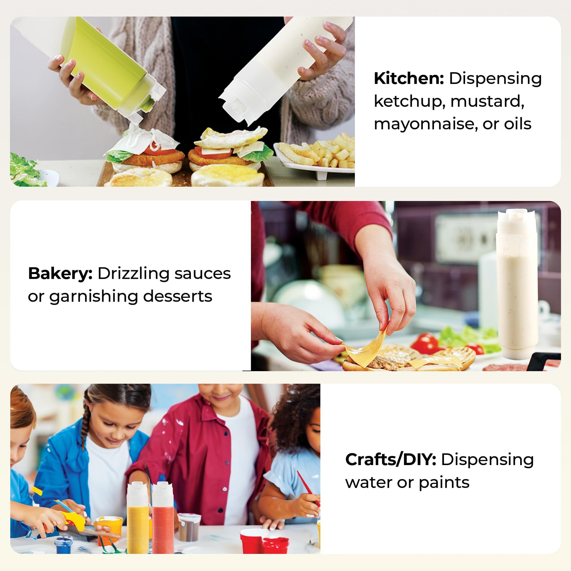 • SNAP-BACK ELASTICITY: The soft, flexible plastic will snap back to its original form making it easier to dispense of condiments.