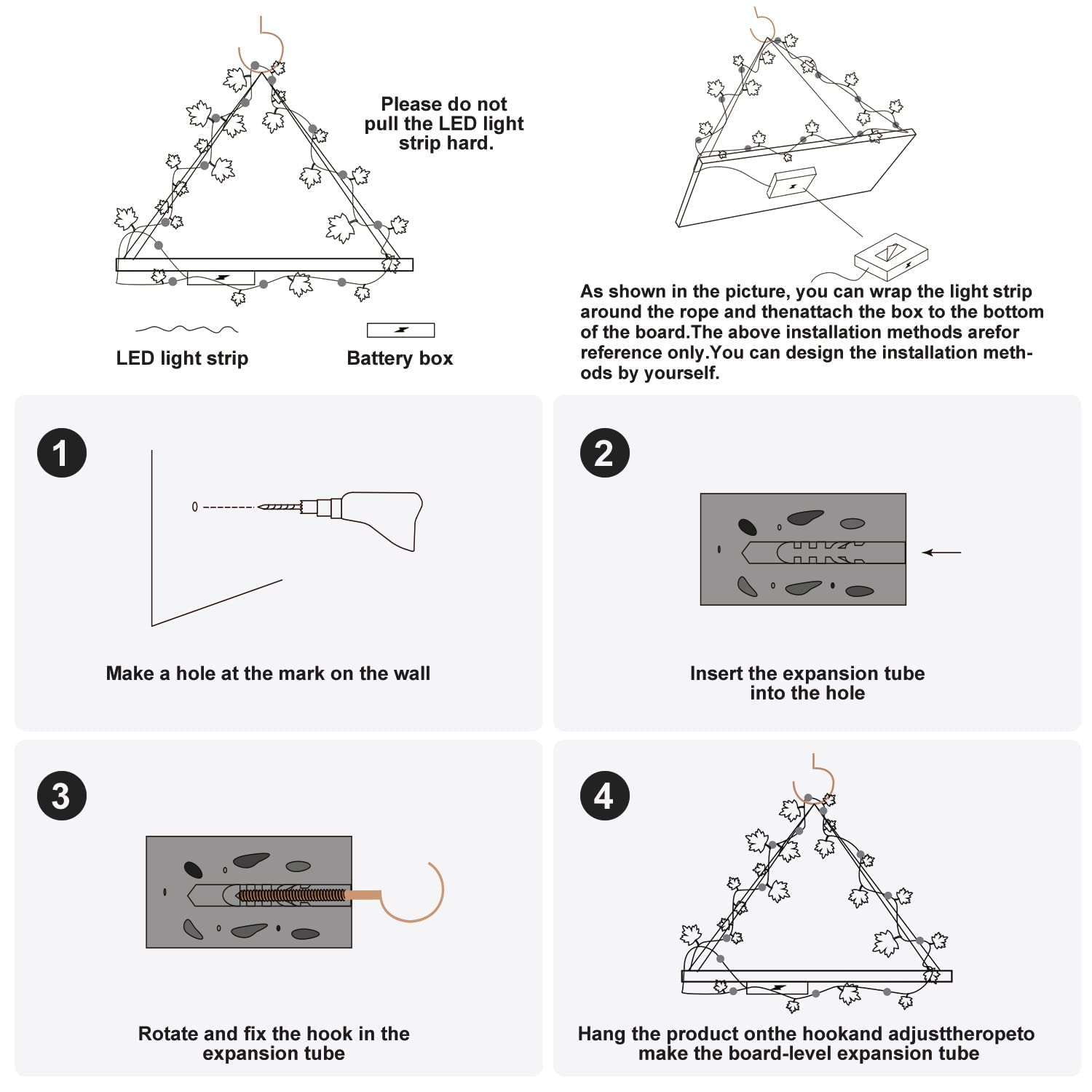 • What You Get - 2-Pack hanging rope shelf with a greenery-style LED strip (Not including batteries),Install the required wall anchors and metal hooks, a nano-adhesive for sticking the electromagnetic box to the shelf, and a piece of the clear instructions. If there are any damage or trouble, 30-DAY money back warranty and 24/7 friendly customer service will be provided.