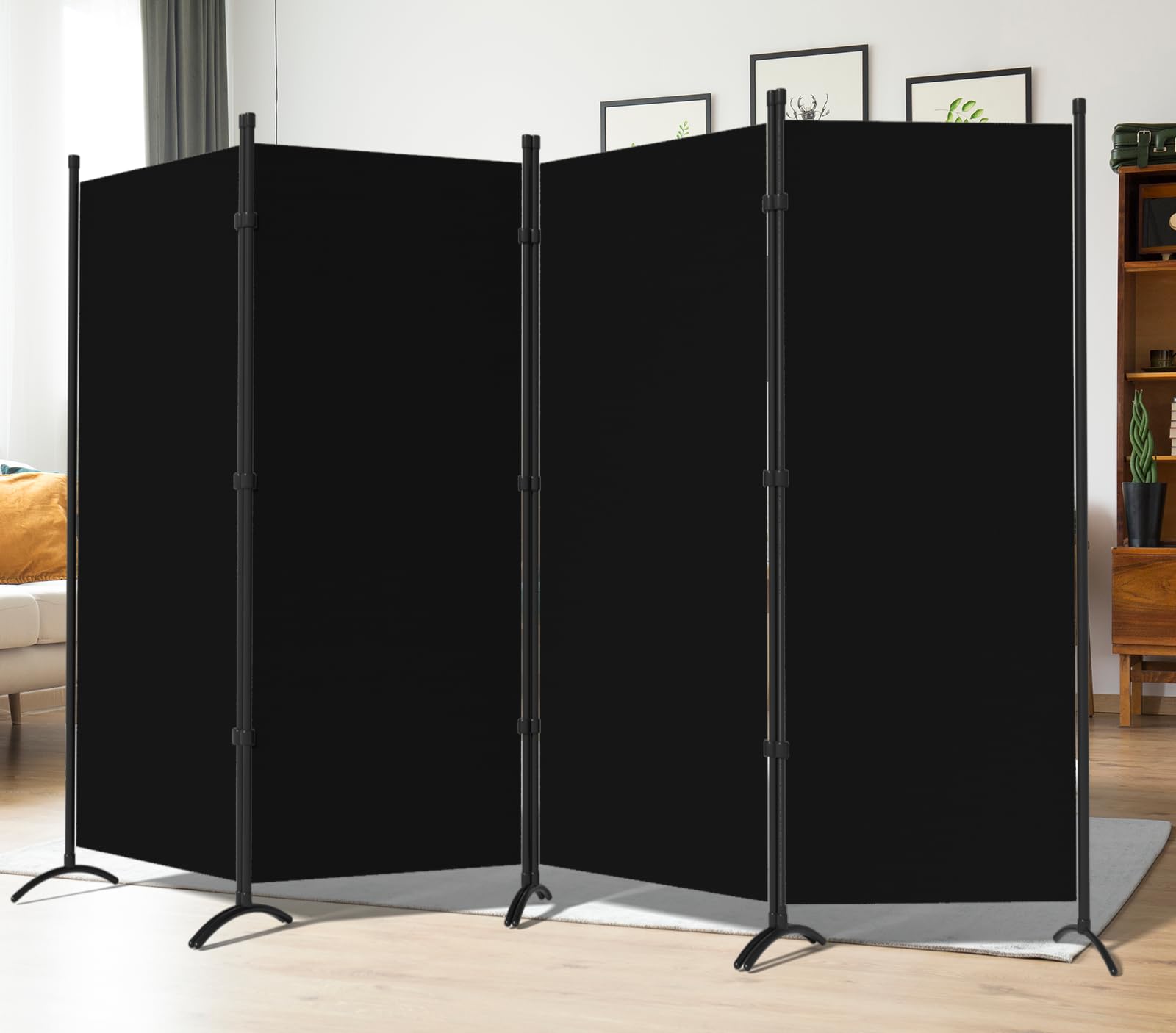 Room Dividers Folding Privacy Screens 4 Panel Partition Screen Steel Frame& Frabic Office Partition for Home Office Dorm Decor Black