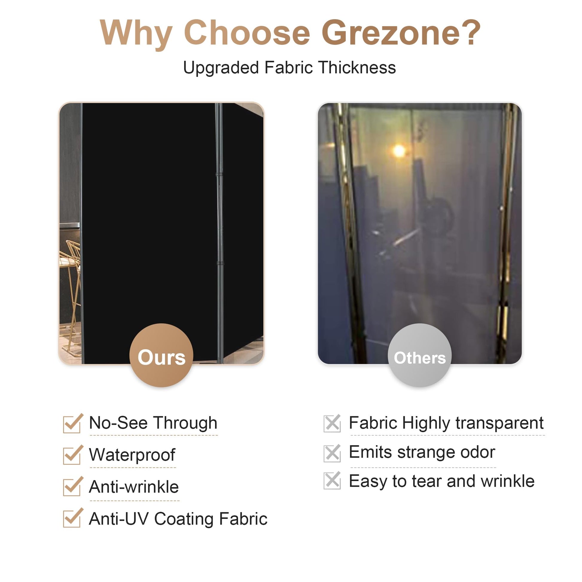• Divider dimensions: 86'' W x 67'' H Dark grey color frame and fabric, offering a neat and classic look.
