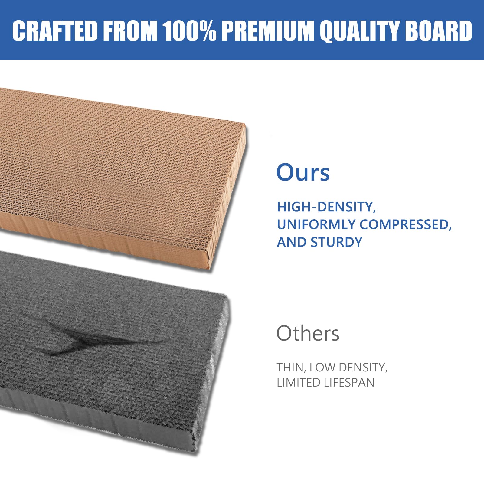 • [CORRUGATED SCRATCHER & CATNIP INCLUDED]: This cardboard cat scratcher house' corrugated texture helps groom their nails as they dig in and keeps your scratching board for the cat fresh at all times. Your furry friend meets this fun surface to scratch, which helps groom their claws. Sprinkle with catnip to attract and encourage your cat to use this scratcher. The catnip for cats helps you entice your kitty to have good scratching habits and keeps your cat interested and entertained for hours.