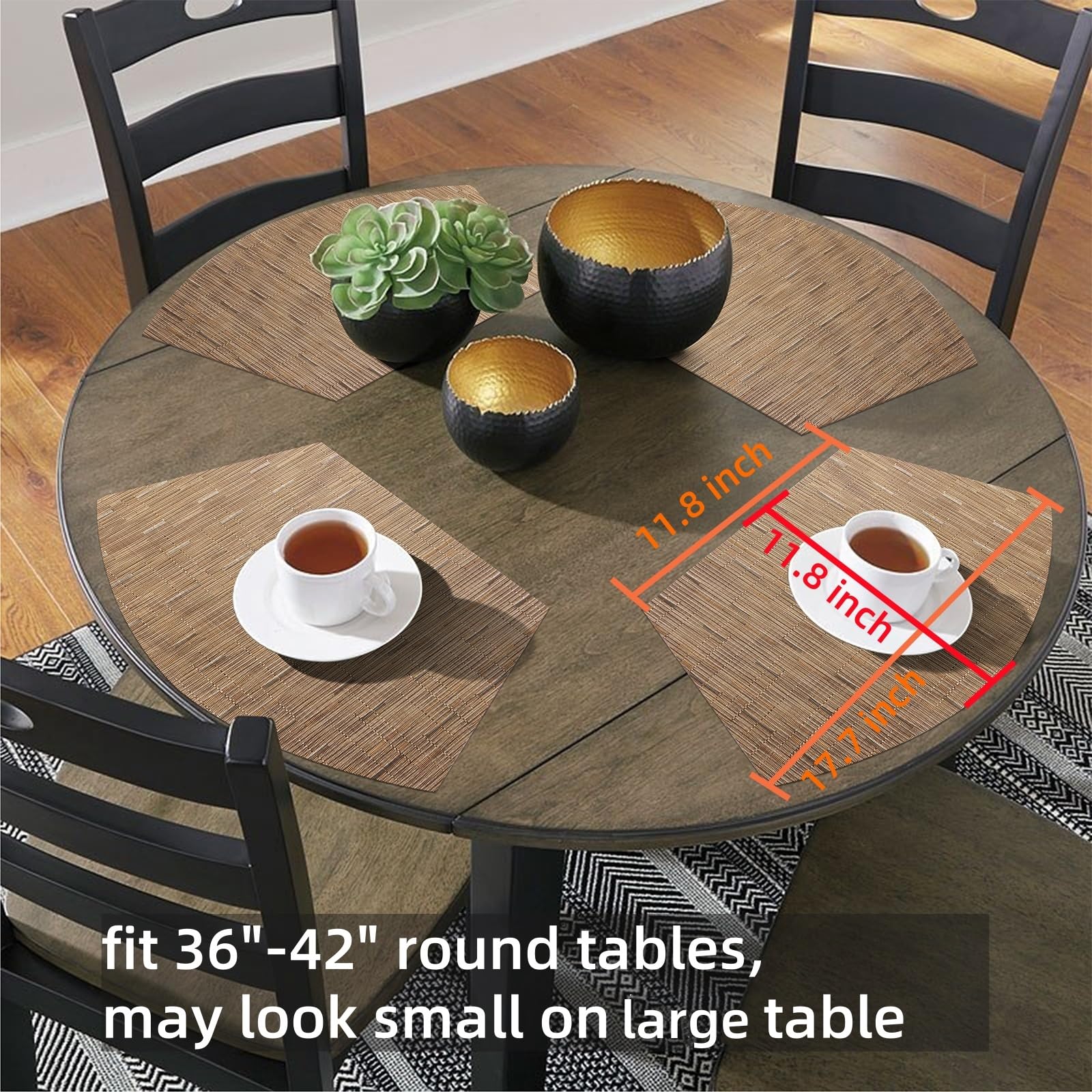 SHACOS Round Table Placemats Set of 4 Wedge Shape Woven Vinyl Place Mats Heat Resistant Wipe Clean Round Table Mats Home Table Decor (4, Tan)