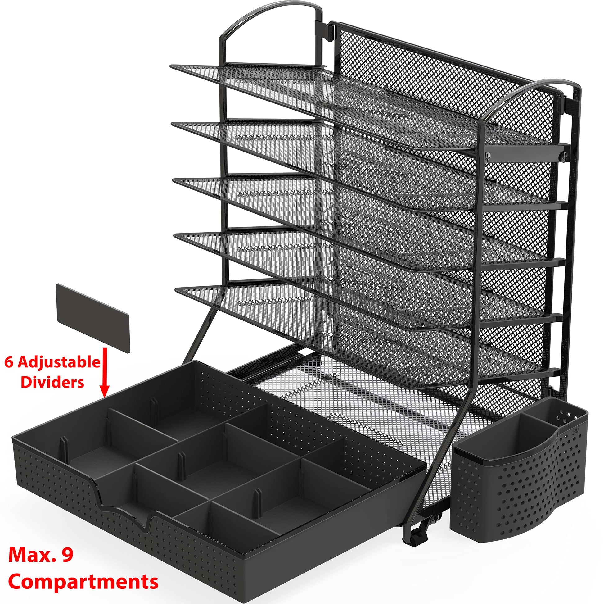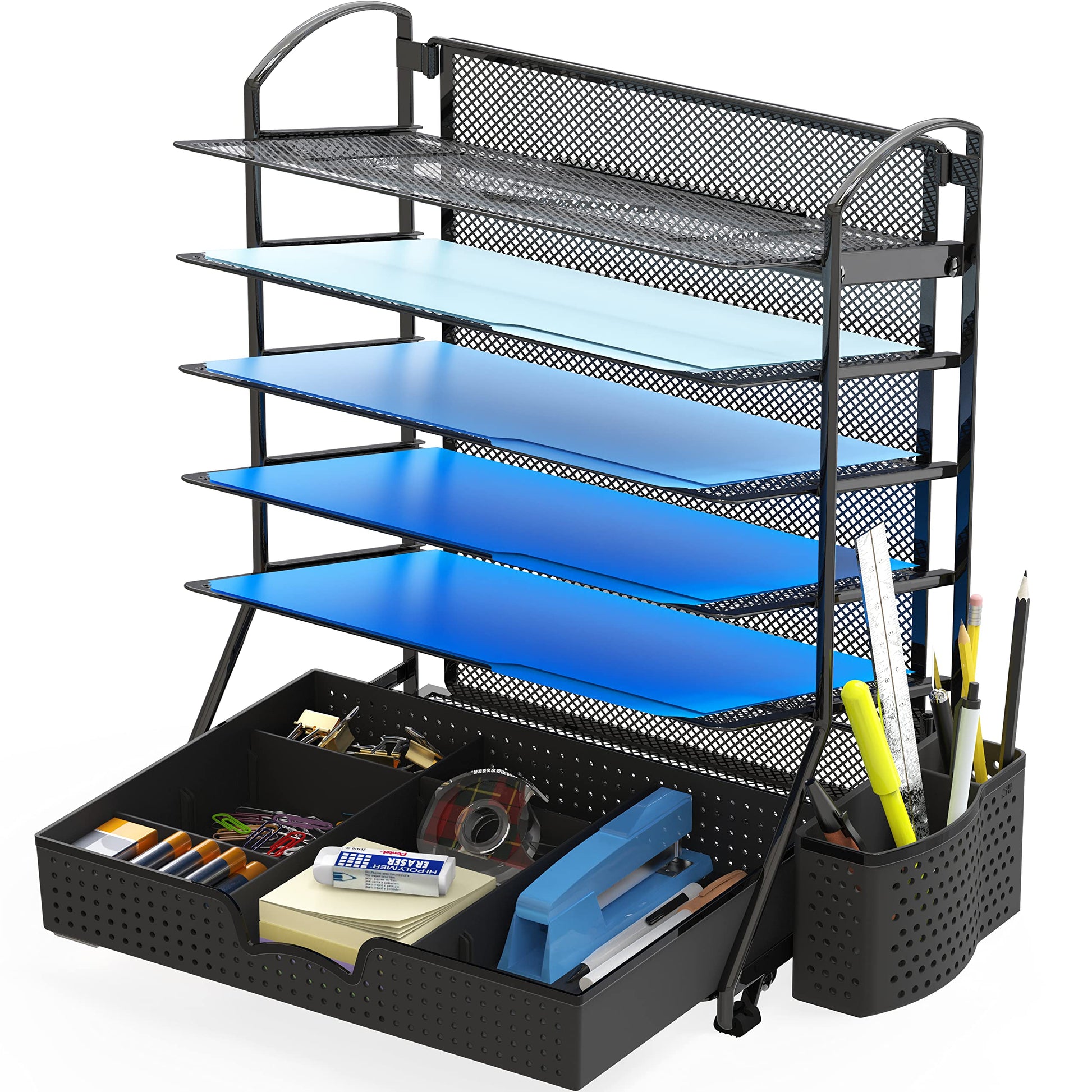 • Top 5 Tilted Trays - Includes five steel trays for storing Letter/A4 paper, folders, binders, mail, and more with a tilted design for easy file access.