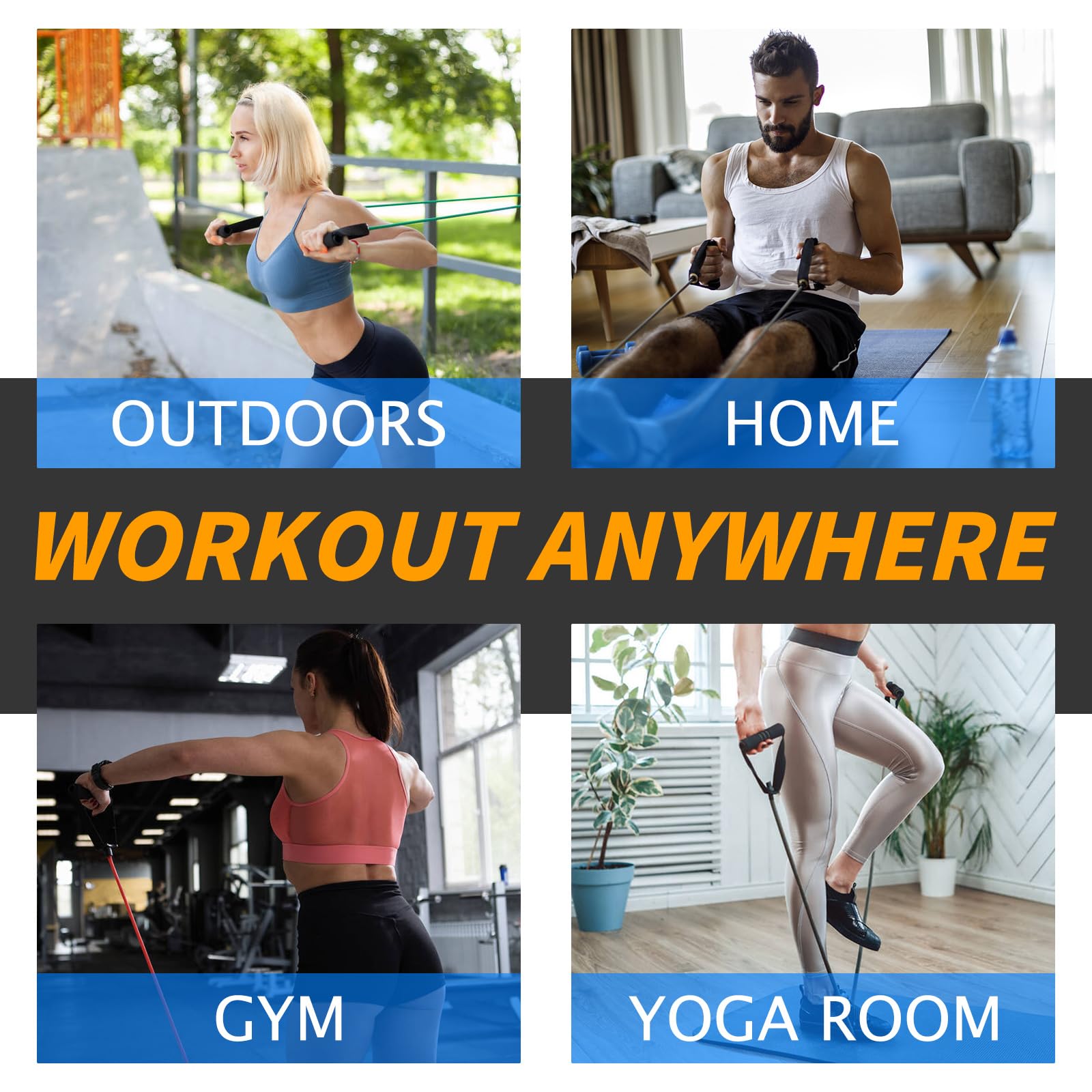 • Versatile Fitness Companion: No matter your fitness journey, these resistance bands with handles for working out men and women have you covered. From targeting specific muscle groups to enhancing group training sessions, Pilates, physical therapy, and rehabilitation, these stretch fitness bands seamlessly integrate into diverse fitness routines.