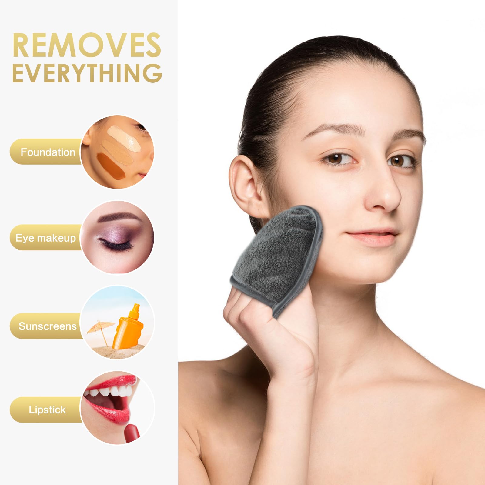 SINLAND 6 Pack Microfiber Makeup Remover Pads Reusable Makeup Eraser Washable Facial Cleansing Pads With Laundry Bag Dark Grey
