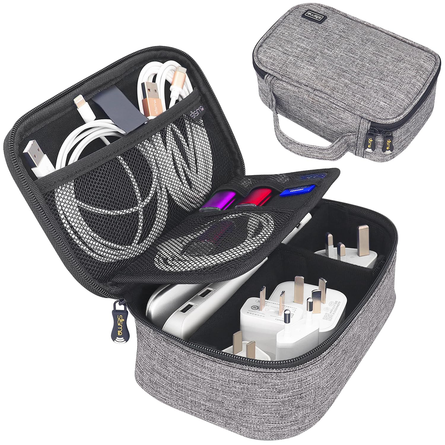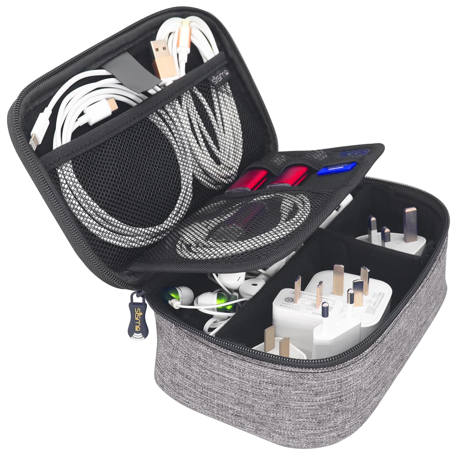 sisma Electronics Cords Organizer Tech Accessories Storage Case Travel Small Carrying Bag for Charging Cables Adapter USB Plugs Power Cord Leads - Grey 1680d