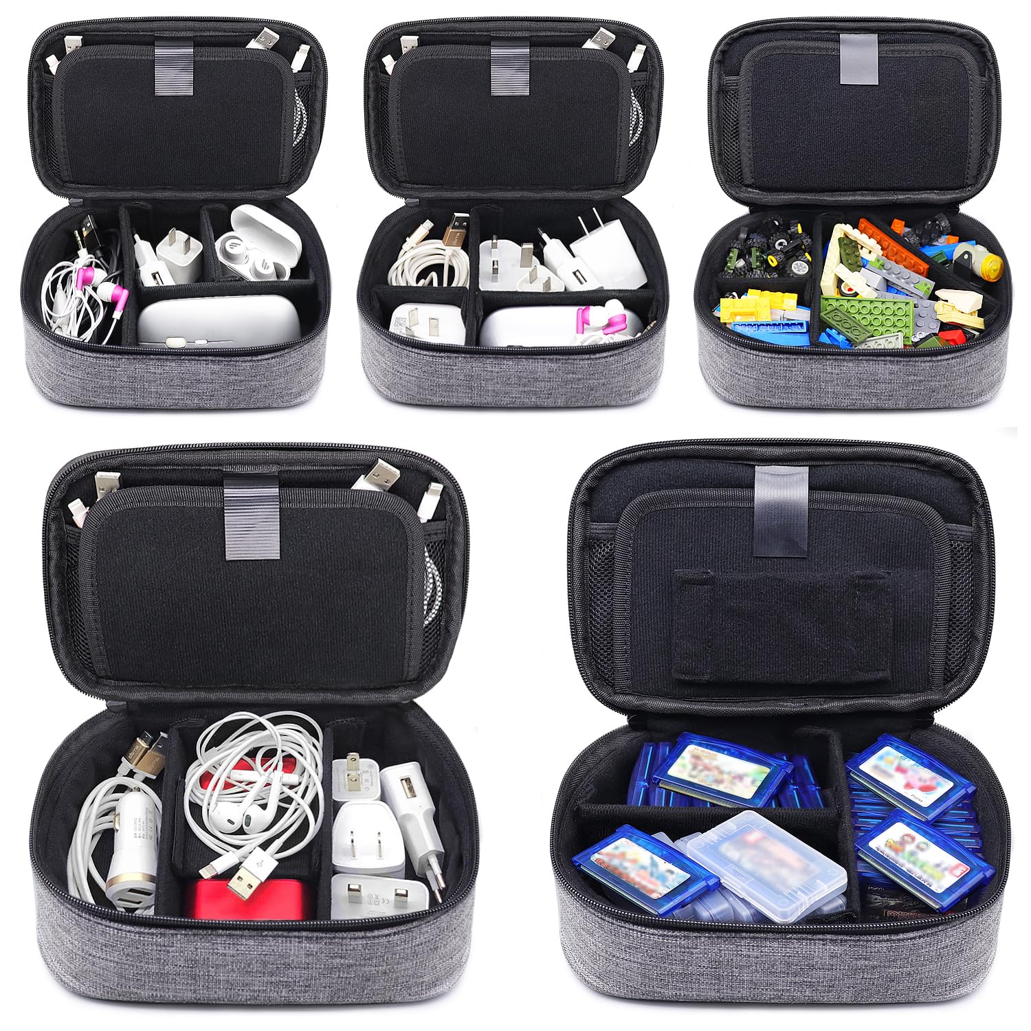 • Small travel organizer conveniently stores cords, external battery, chargers, earphones, memory cards, leads, laptop adapter, mouse, external hdd small electronic accessories, can also cover cosmetics, schoolstationery, or toys etc
