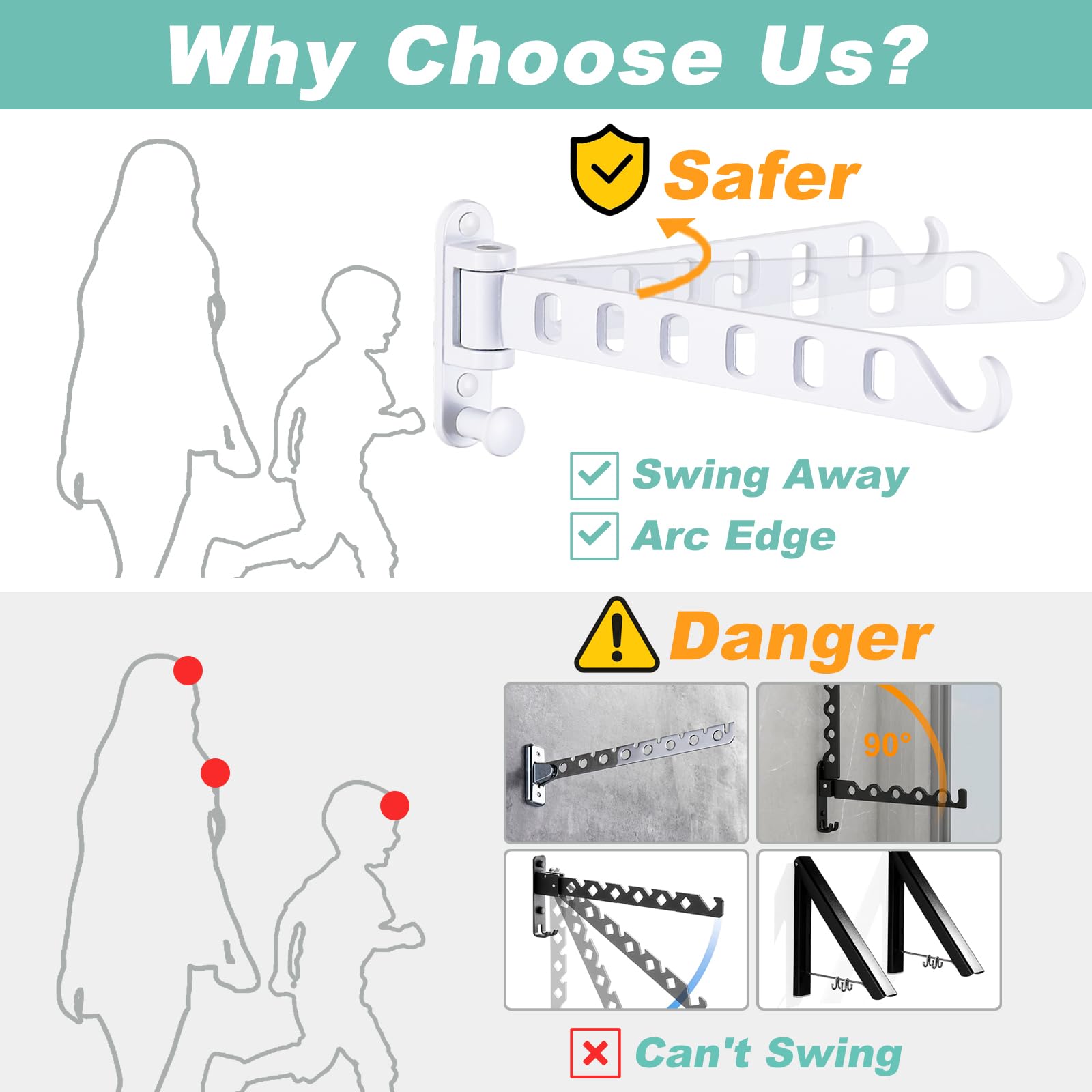 • 【Safe 180° Rotation】Unlike traditional hangers, SKIKEN's Clothes hanger holder features a swing arm that swings away when bumped, preventing injuries. The 180° rotation allows flexible positioning, making it a safer and more convenient hanging bar for daily use.